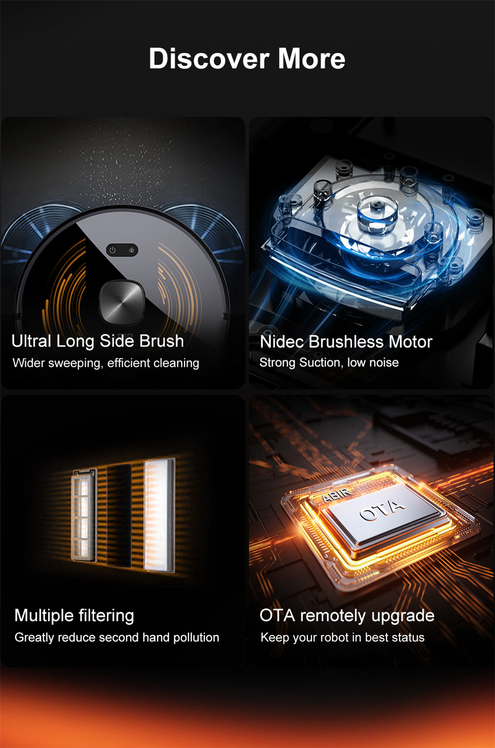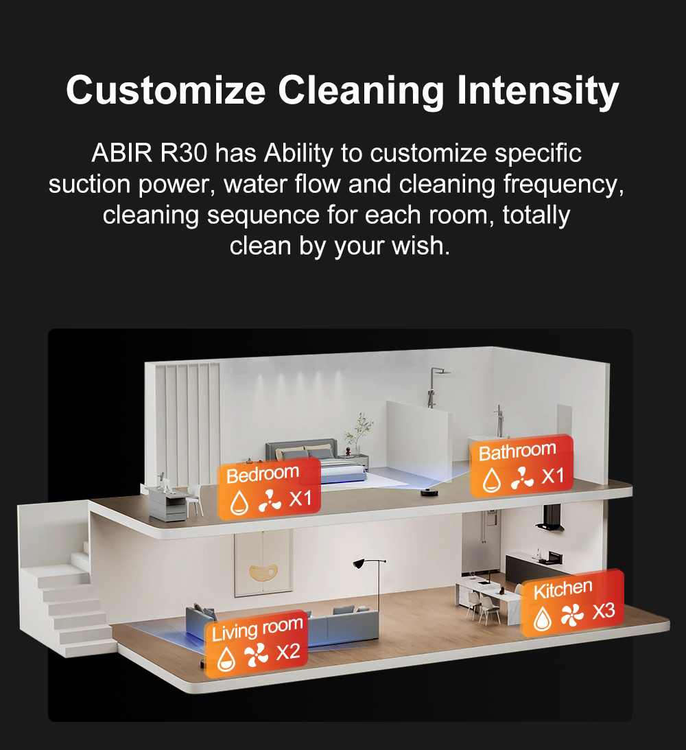 ABIR K30 on tehokas robotti-imuri, joka yhdistää tarkan laser- ja SLAM-navigoinnin, vahvan imutehon sekä pitkän käyttöajan. Se sopii kotiin, jossa on sekä kovat lattiat että matot, ja sen ohjaus onnistuu kätevästi älypuhelimella.