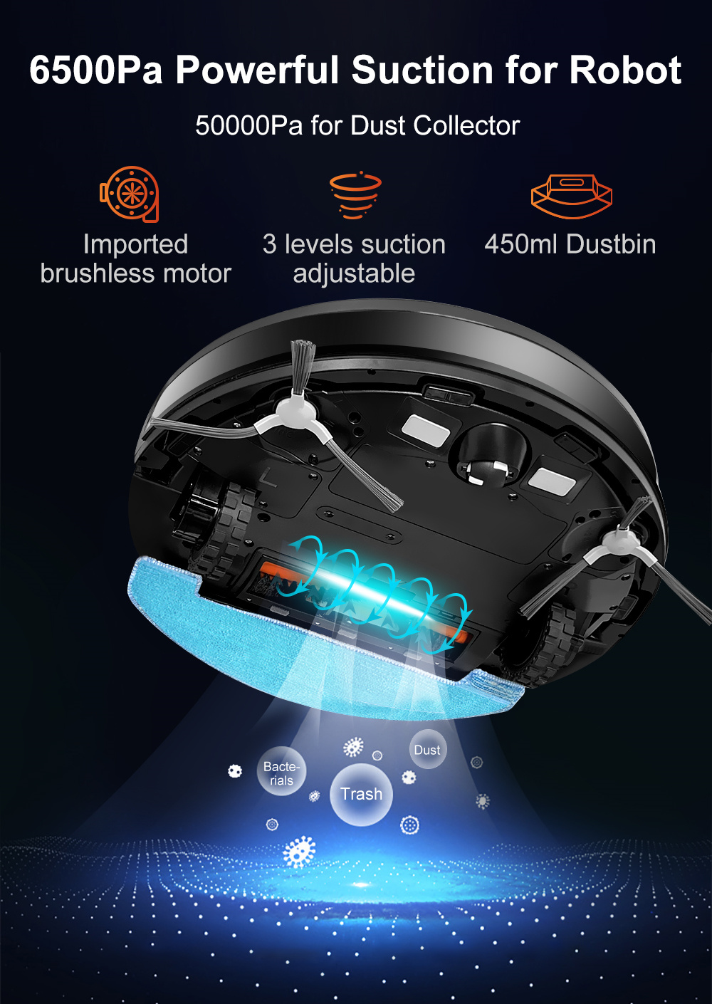 Proscenic Q8 robotti-imuri ja moppaus, 4200 Pa:n imuteho, lidar-navigointi, 200 minuutin käyttöaika