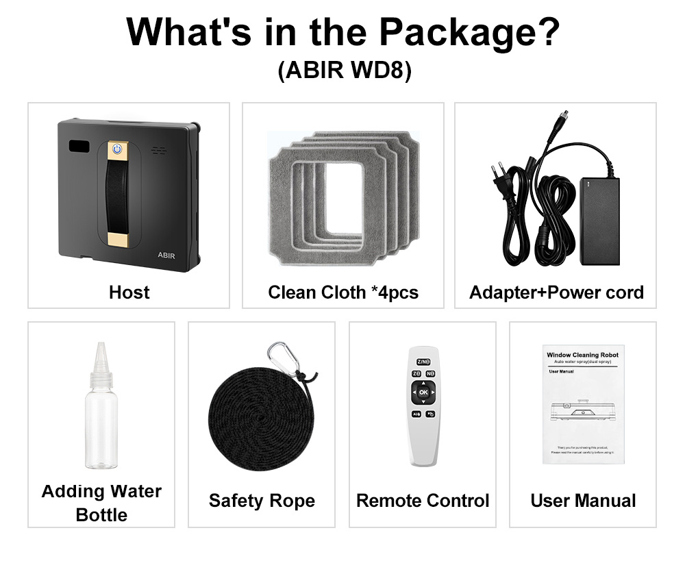 ABIR WD8 ikkunapuhdistusrobotti tehokas 3000Pa imuteho kaksi ultraäänisuihkua sovellus kaukosäädin