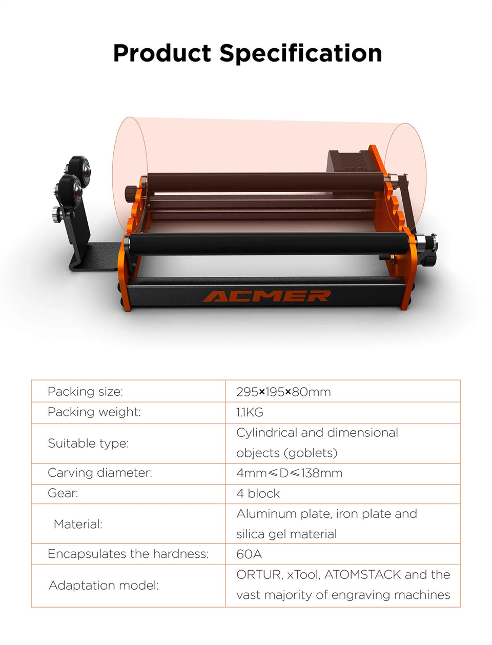 ACMER M2 laserpyörivä rulla 360° y-akselinen kaiverrusmoduuli 4–138 mm sylintereille