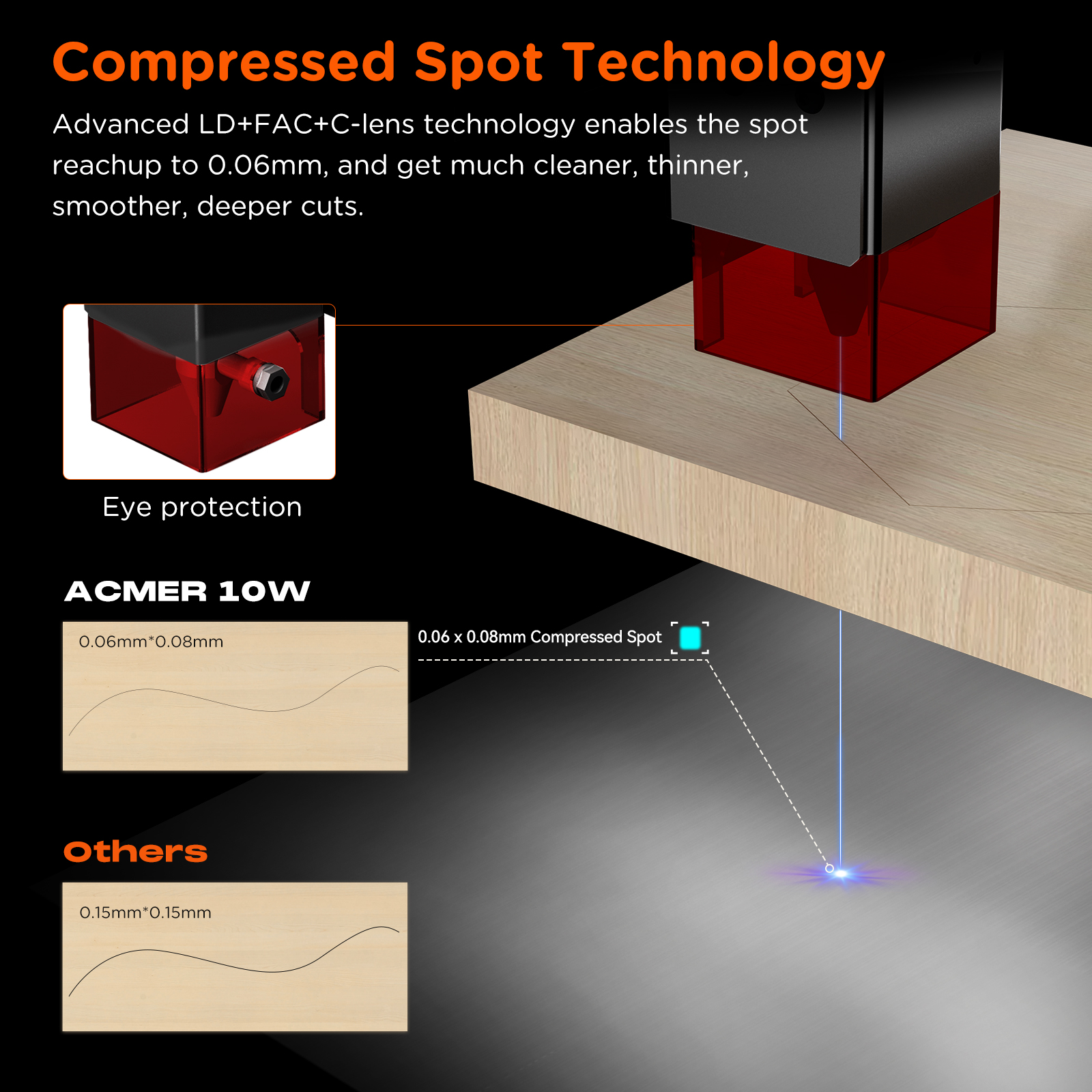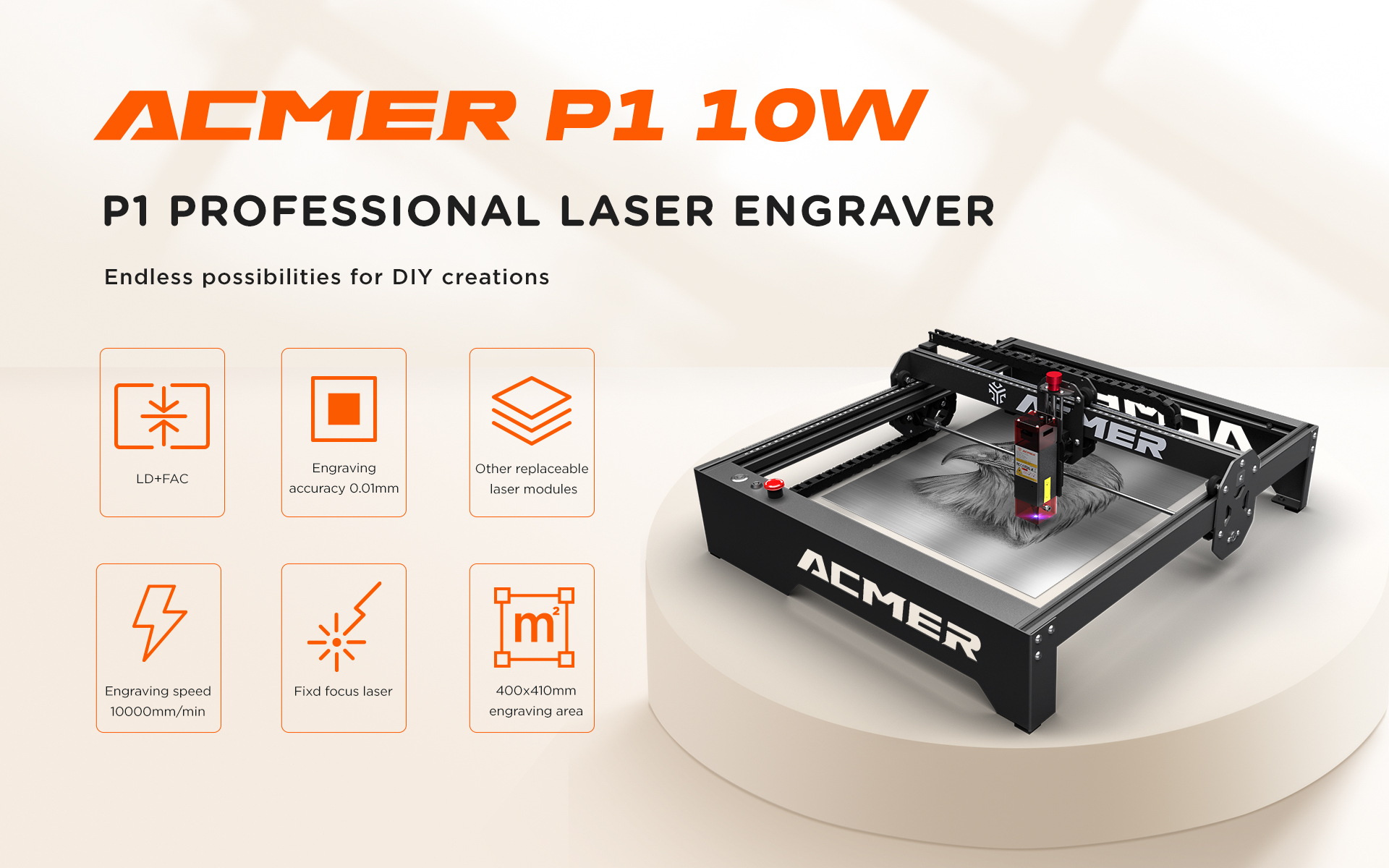 ACMER P1 10W laserkaivertaja kaiverrusnopeus 10000 mm/min offline-kaiverrus tarkka pistekoko 0,06x0,08 mm