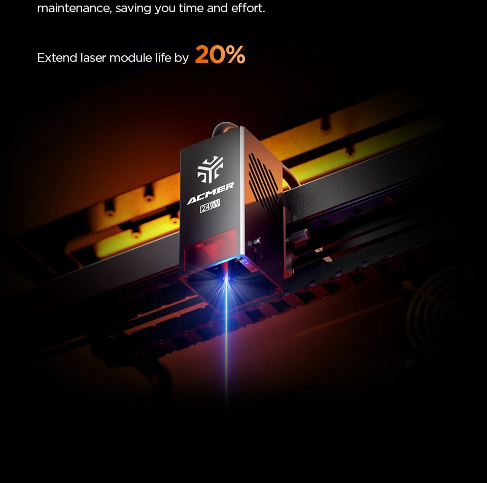 Kaikki yhdessä -laser-moduuli yhdistää punaisen ja sinisen valolähteen, jolloin kaiverrus ja leikkaus voidaan tehdä samassa ohjelmointijaksossa ilman laserin vaihtoa.