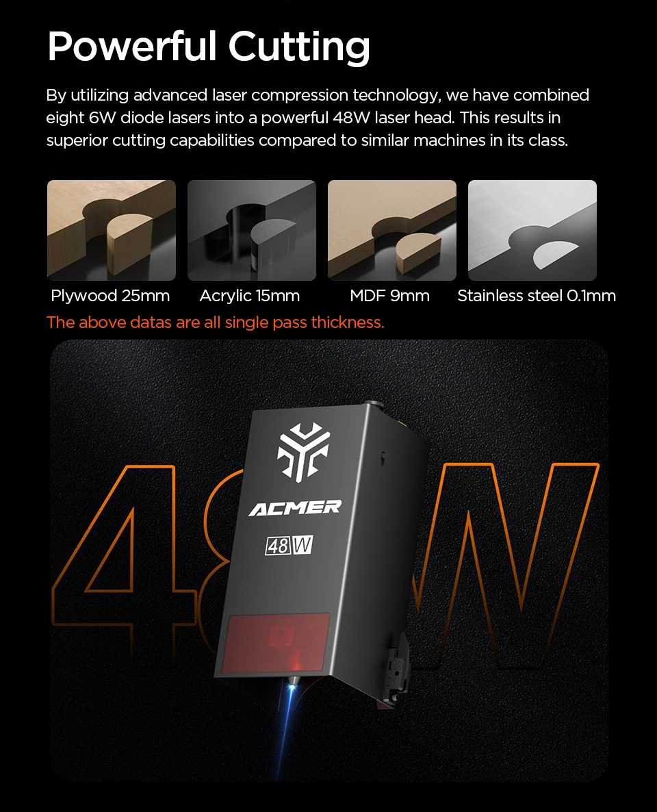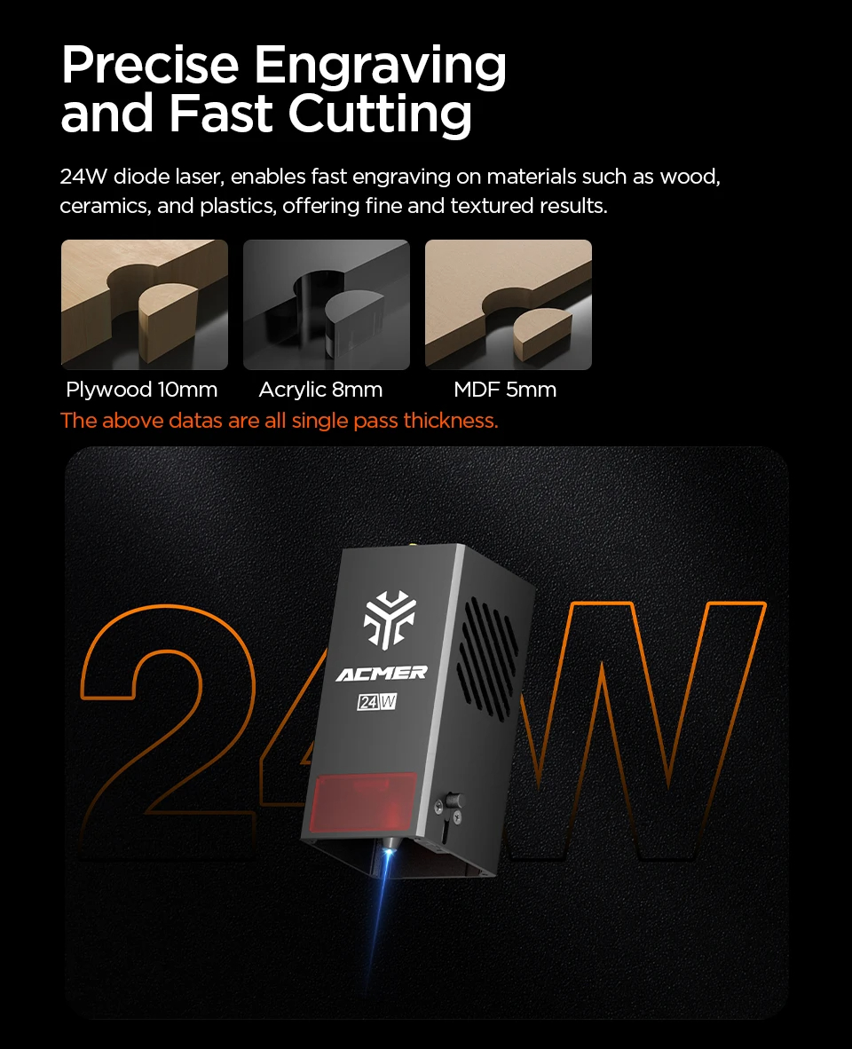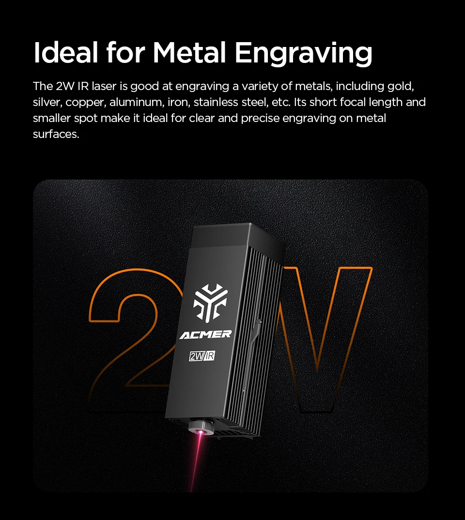 ACMER P1 10W laserkaivertaja kaiverrusnopeus 10000 mm/min offline-kaiverrus tarkka pistekoko 0,06x0,08 mm