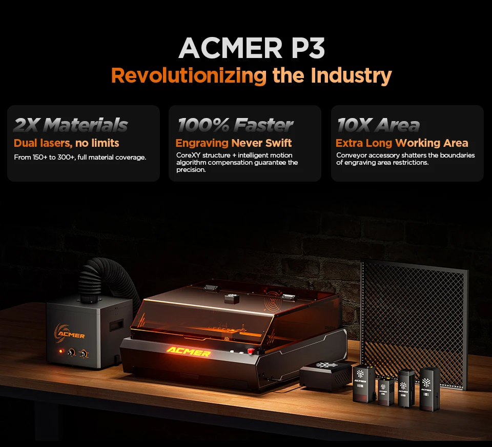 1 x ACMER P3 - 2-in-1 kaksoislaser-kaiverruskone, paketti