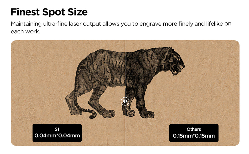 1. Tarkka laserpiste: 0.04mm x 0.04mm -koko mahdollistaa yksityiskohtaiset ja siistit kaiverrukset ammattimaiseen lopputulokseen.