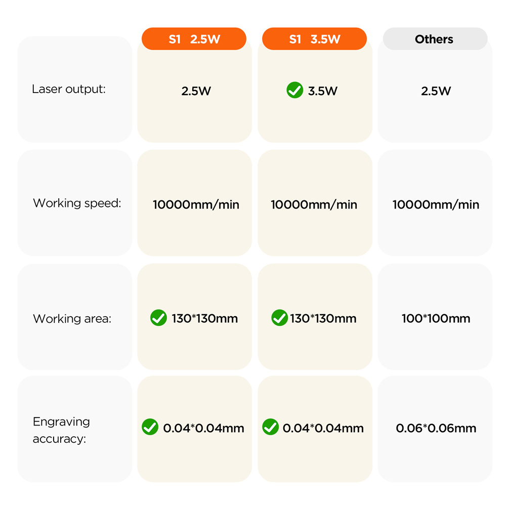 Tämä kompakti ja helppokäyttöinen ACMER S1 Mini 2.5W Portable Laser Engraver sopii tarkkaan kaivertamiseen ja pienten projektien leikkaukseen kotiverstaassa, ateljeessa tai työpisteellä. Se yhdistää tarkan lasertekniikan, laajan materiaalituen ja tehokkaan työnopeuden selkeään ohjelmistoyhteensopivuuteen.