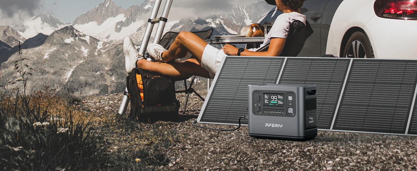 Aferiy P010 800W 512Wh LiFePO4 kannettava varavirtalaite ja AF-S100 100W aurinkopaneeli