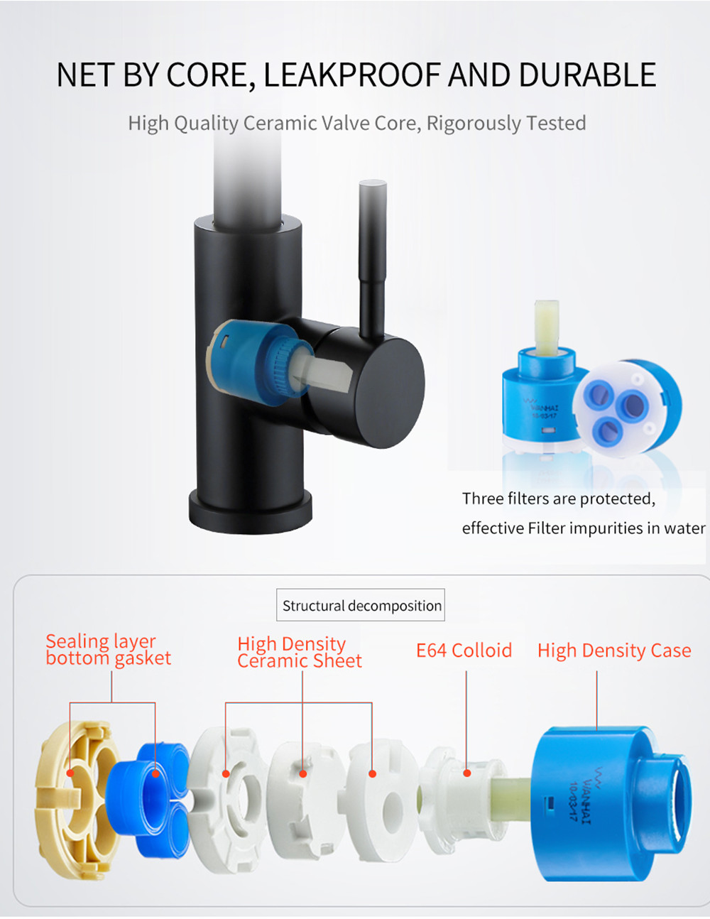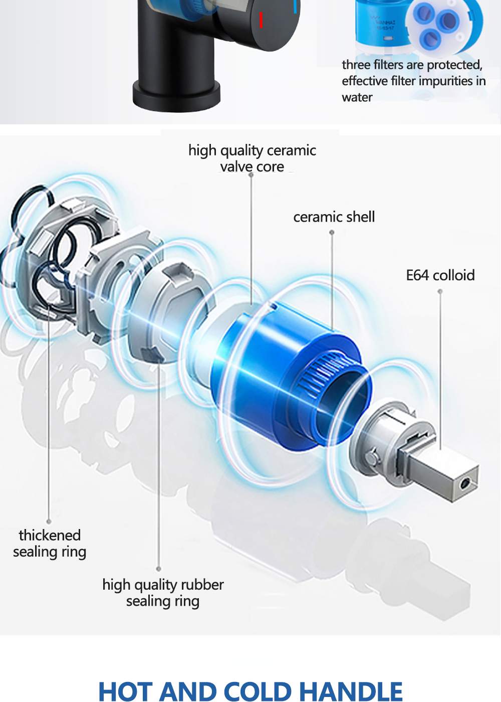 3. Korkealaatuinen keraaminen venttiilin kara on lämmön- ja kulutuksenkestävä, käyttö pehmeää ja tasaista.