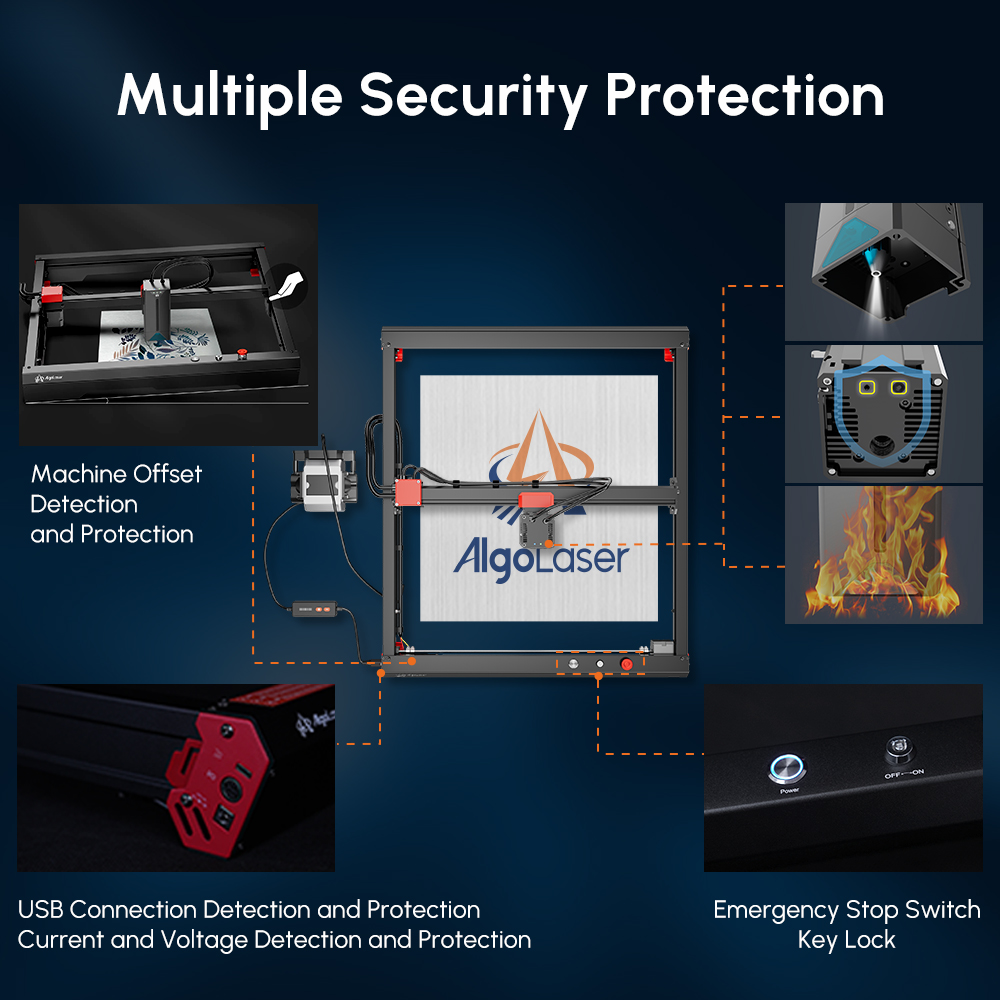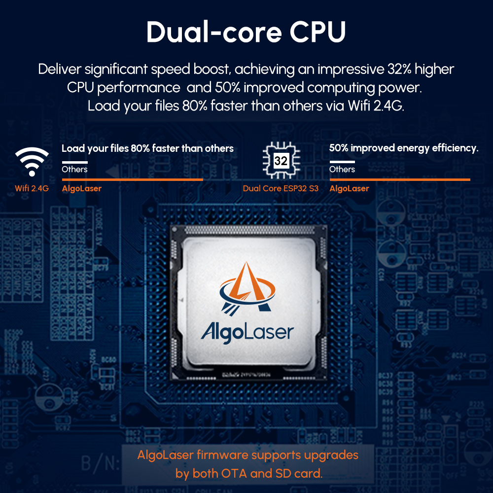8MB RAM, 8MB tallennusmuisti ja sisäänrakennettu 32GB SD-kortti tarjoavat lisää mahdollisuuksia tuleviin päivityksiin. AlgoLaser-laiteohjelmisto tukee päivityksiä sekä OTA:na että SD-kortilla.