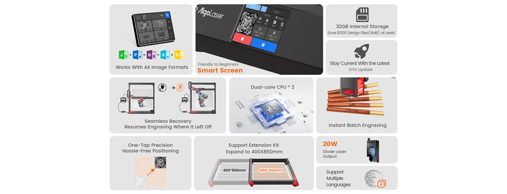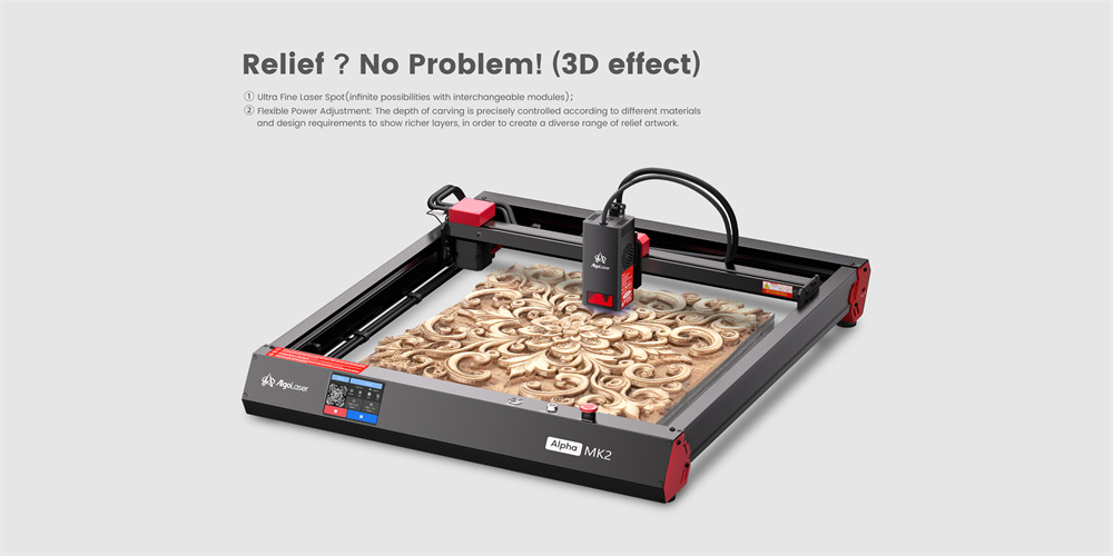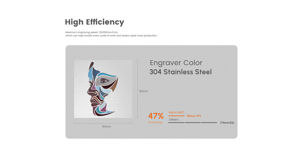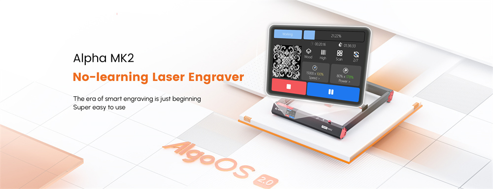 Alphas MK2 on helppokäyttöinen laserkaivertaja, jossa on selkeä kosketusnäyttö, korkea kaiverrusnopeus, 32GB sisäinen tallennustila sekä laajennettava työalue. Laite toimii sujuvasti suosittujen suunnittelu- ja kaiverrusohjelmien kanssa, mikä tekee siitä sopivan sekä aloittelijoille että kokeneille käyttäjille.