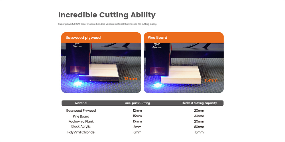 Enimmäisnopeus 20,000 mm/min mahdollistaa eri kokoisten töiden tehokkaan käsittelyn. Työstöaika lyhenee, mikä sopii pieniin projekteihin ja suurempiin tuotantoeriin ilman laadusta tinkimistä.