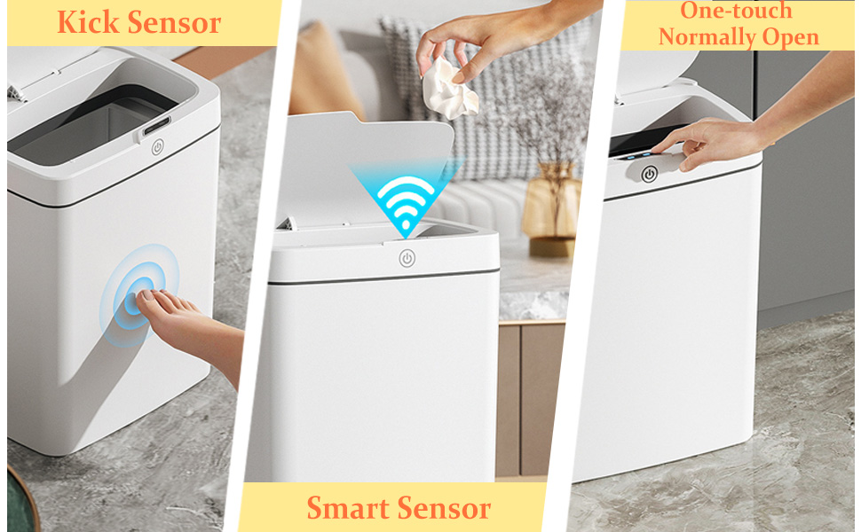 1. Monipuoliset tunnistustilat: infrapuna-anturi, 360° potkuavaus sekä manuaalinen avaus. Infrapuna reagoi 0.2 sekunnissa. 360°-kansi avautuu mistä tahansa suunnasta ilman kumartumista. Yhdellä painikkeella toimiva jatkuva auki -tila helpottaa toistuvaa käyttöä.