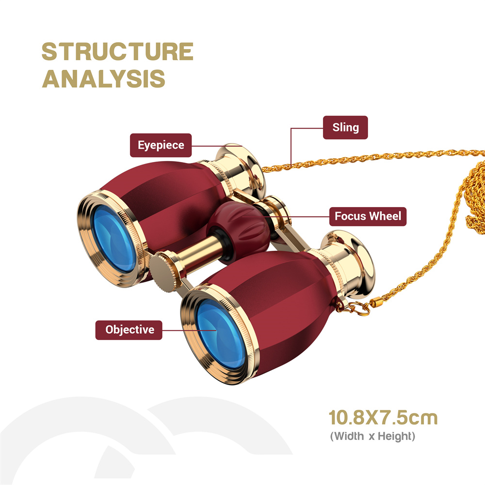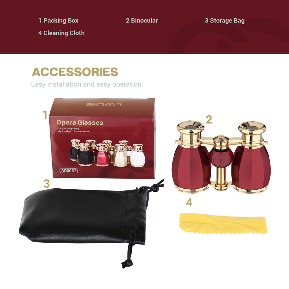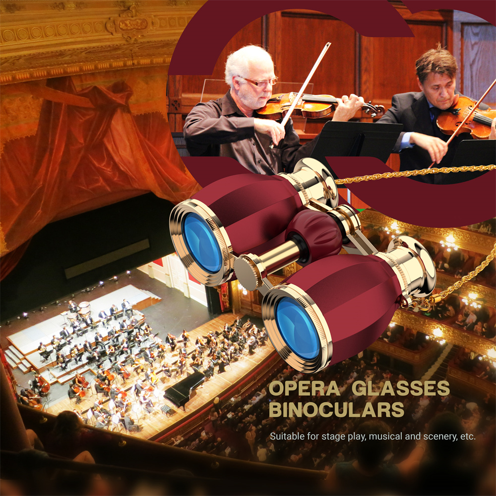 Tyylikkäät ja kompaktit AOMEKIE A03057R -oopperakiikarit tarjoavat 4X suurennoksen, kirkkaan 30mm objektiivilinssin ja kätevän keskisäädön. Sopivat konserttiin, teatteriin ja muihin sisätilaisuuksiin, ja kevyen rakenteen ansiosta niitä on helppo kantaa mukana.