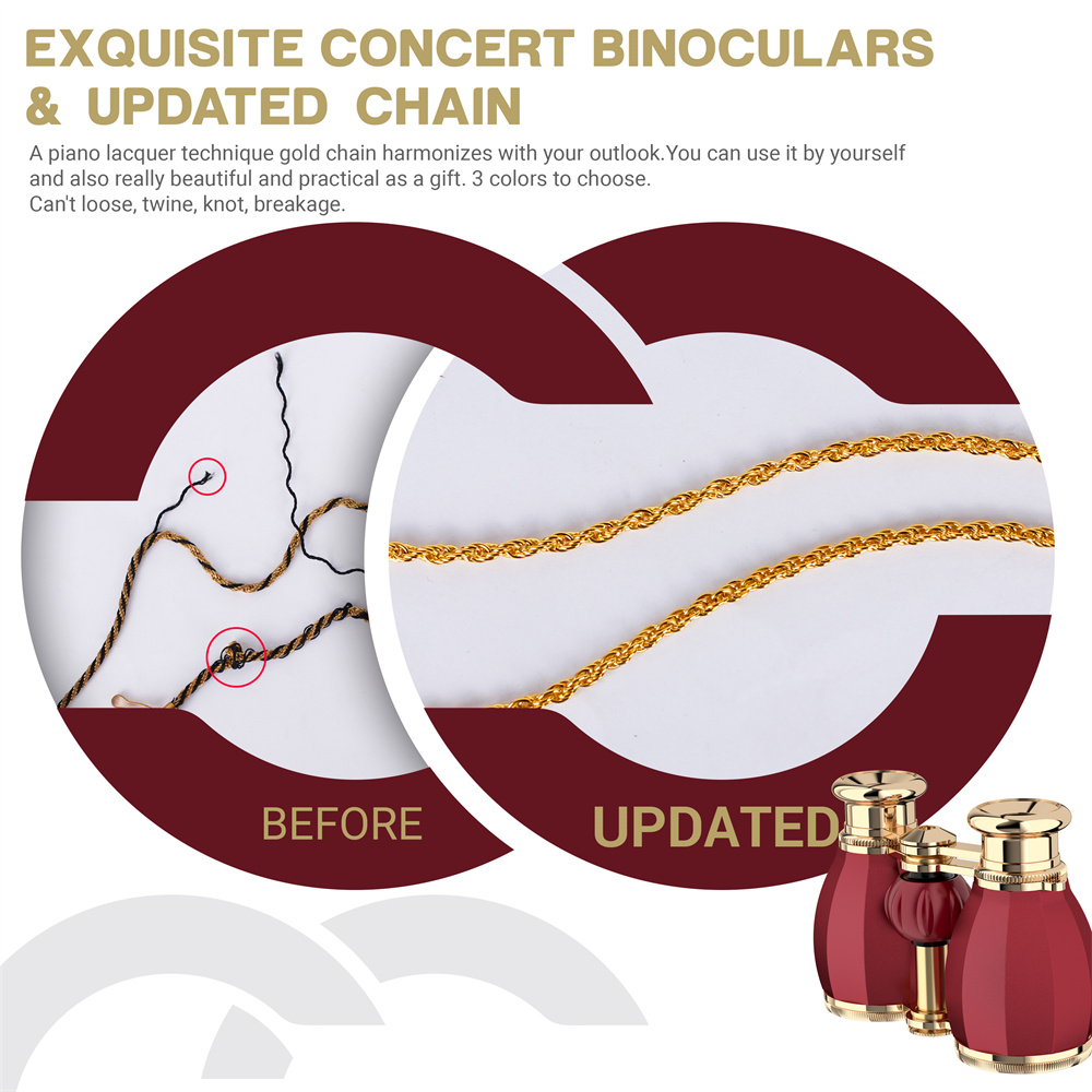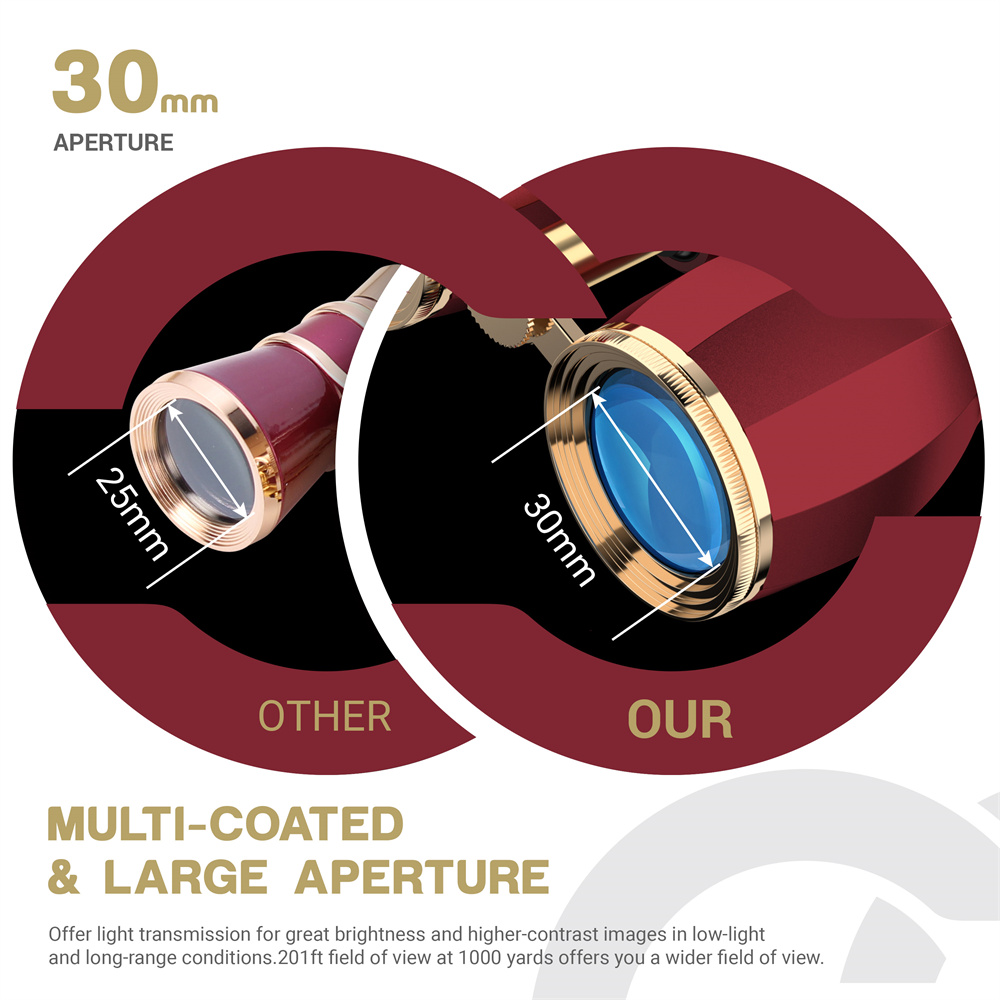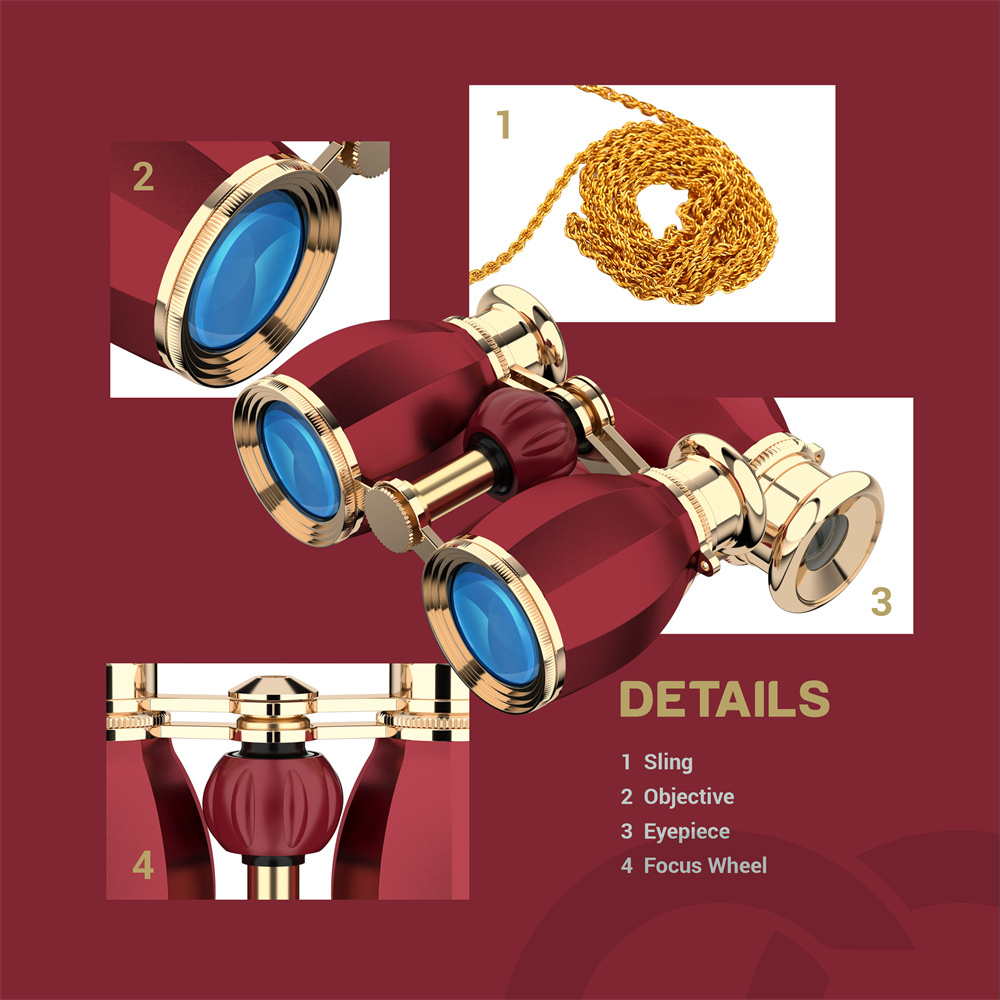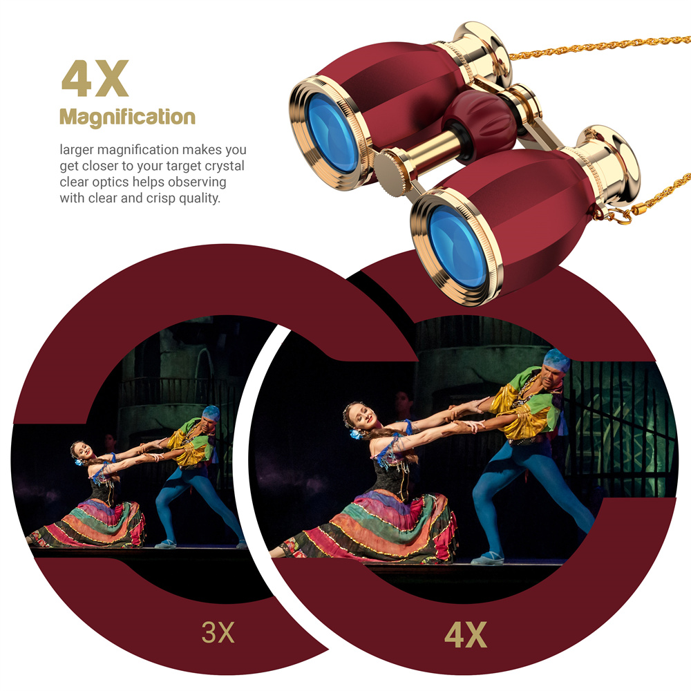 Tyylikkäät ja kompaktit AOMEKIE A03057R -oopperakiikarit tarjoavat 4X suurennoksen, kirkkaan 30mm objektiivilinssin ja kätevän keskisäädön. Sopivat konserttiin, teatteriin ja muihin sisätilaisuuksiin, ja kevyen rakenteen ansiosta niitä on helppo kantaa mukana.
