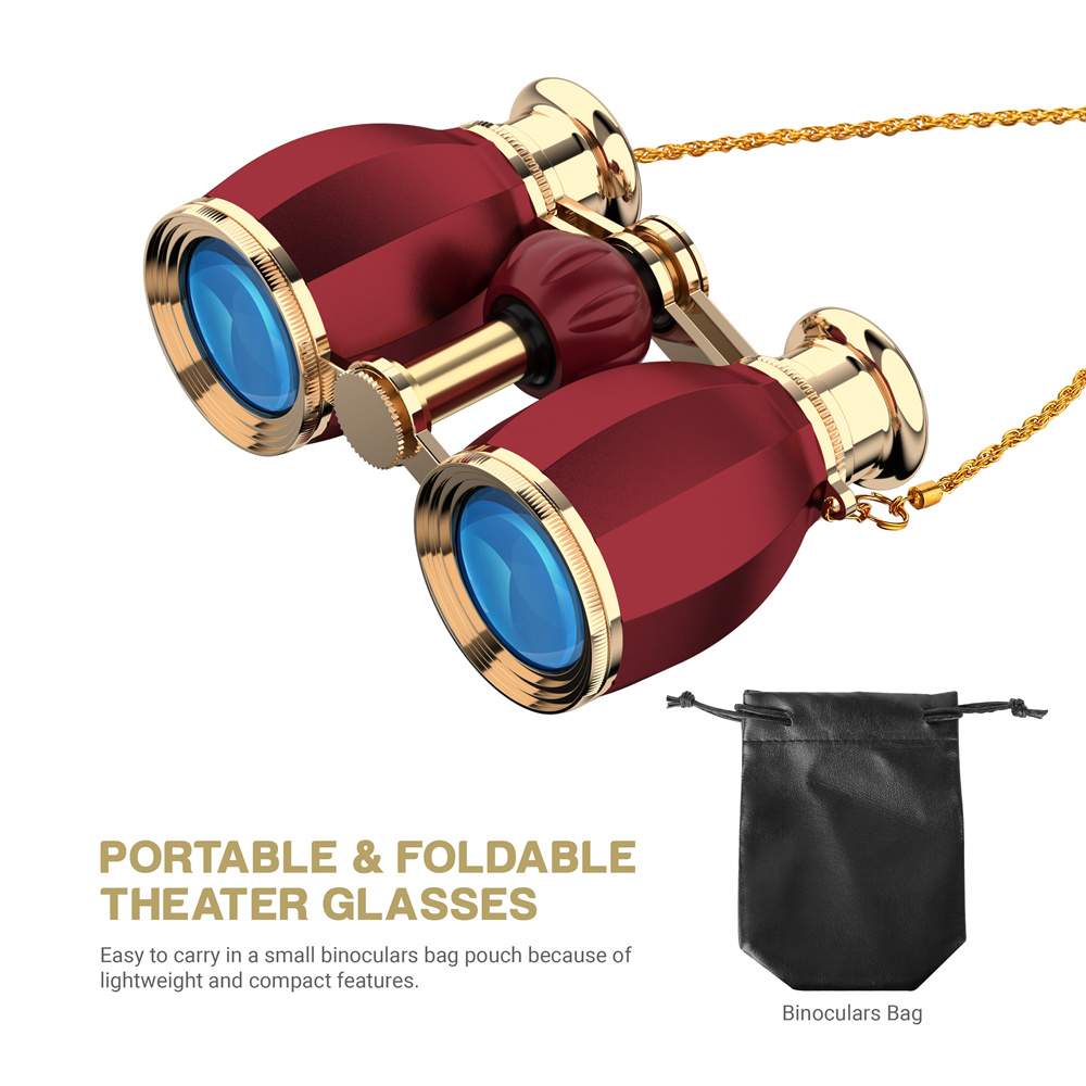 6. Kannettavat ja taittuvat teatterikiikarit: Kevyen ja kompaktin rakenteen ansiosta kiikarit on helppo kuljettaa mukana mukana tulevassa suojapussissa.