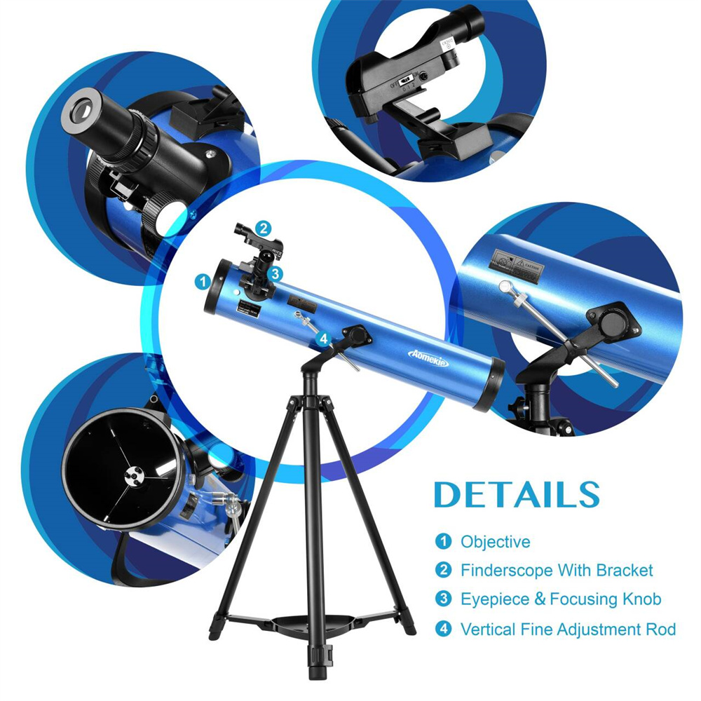 AOMEKIE heijastava kaukoputki 76mm 700mm 210x bluetooth-ohjain jalusta puhelinsovitin kuusuodatin A02018