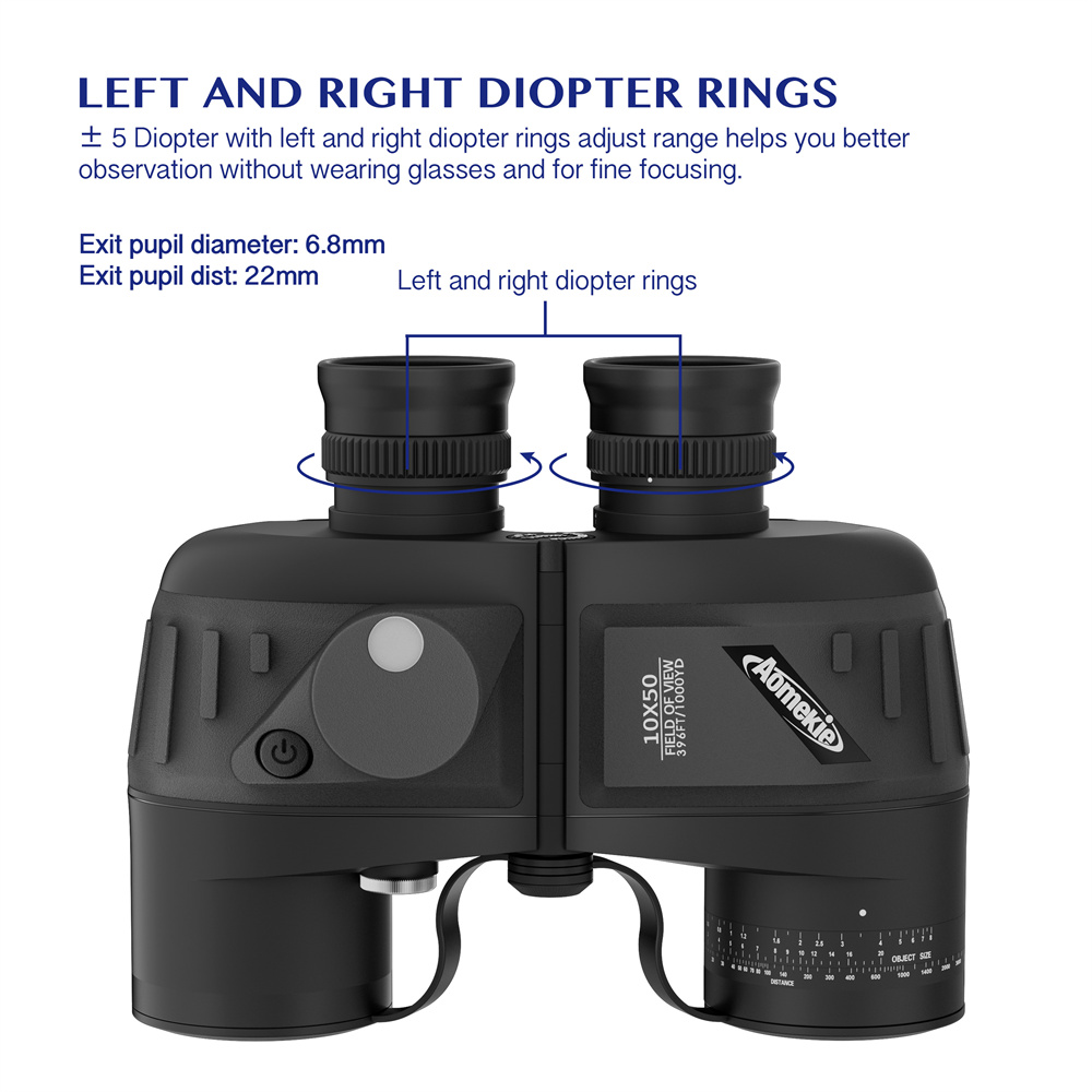 AOMEKIE merikiikarit 7x50 vedenpitävät IPX7 valaistu etäisyysmittari kompassilla AO3002
