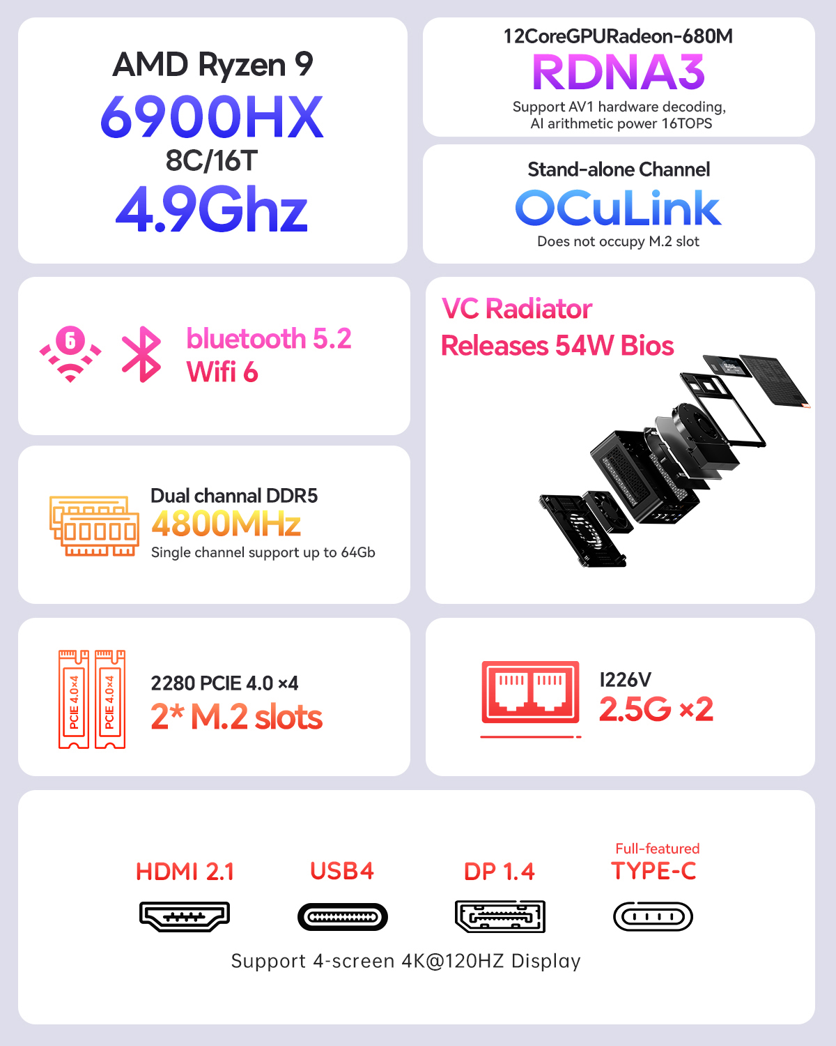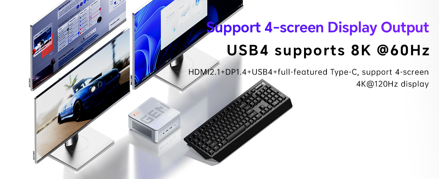 – HD, DP-portti, Type-C, USB4, 4K, nelinkertainen näyttöulostulo: helppo kahden tai useamman näytön käyttöönotto.