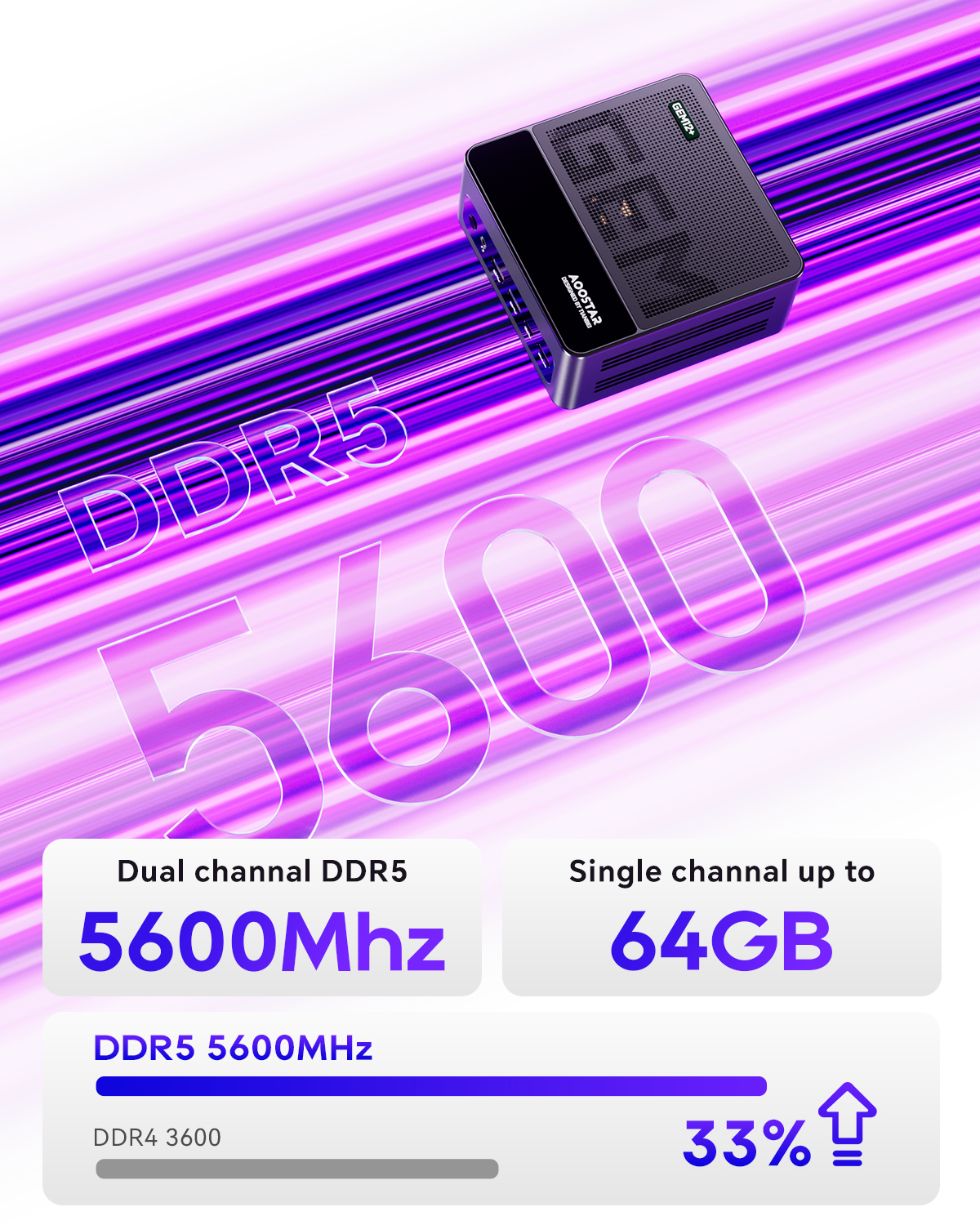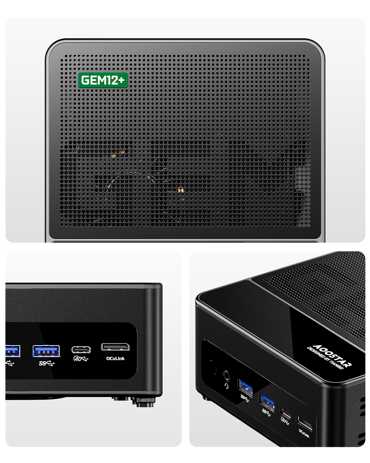 AOOSTAR GEM12+ on kompakti Mini PC, jossa on Windows 11 Pro, tehokas AMD Ryzen 7 PRO 8845HS -suoritin ja AMD Radeon 780M -grafiikka. 32GB DDR5 -muisti ja 1TB M.2 SSD (NVMe 4.0) takaavat sujuvan moniajon, nopean käynnistyksen ja tilaa tiedostoille. Monipuoliset liitännät sekä jopa 4K/60Hz -ulostulot tekevät laitteesta sopivan työskentelyyn, viihteeseen ja kevyeen pelaamiseen.