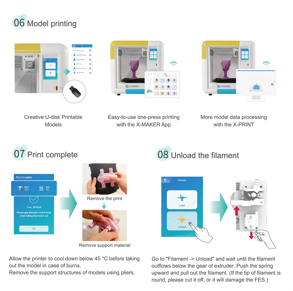 5. Turvallinen, suljettu rakenne: suojaa tahattomilta kosketuksilta, hajuton ja vaaraton filamentti tukee turvallista työskentelyä.