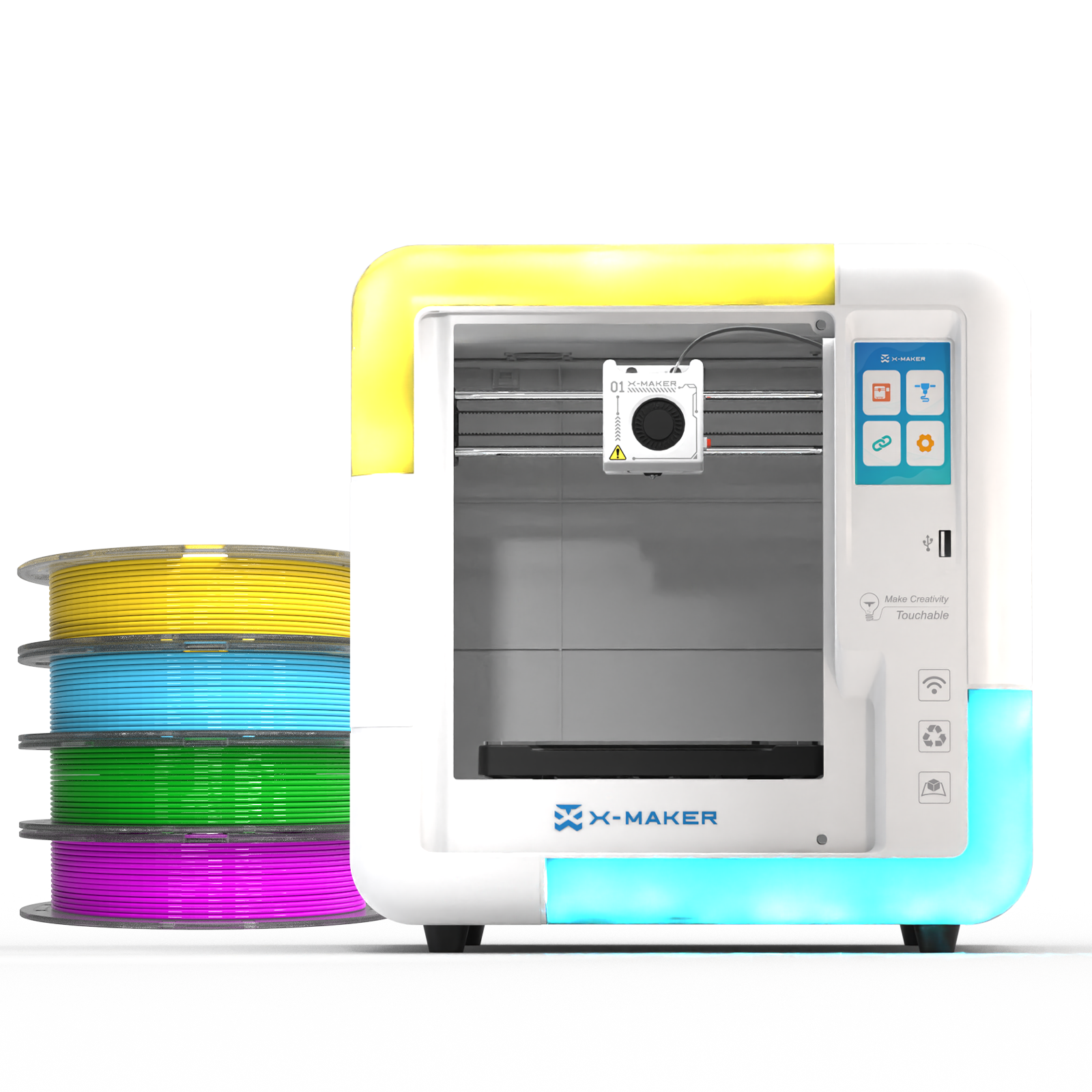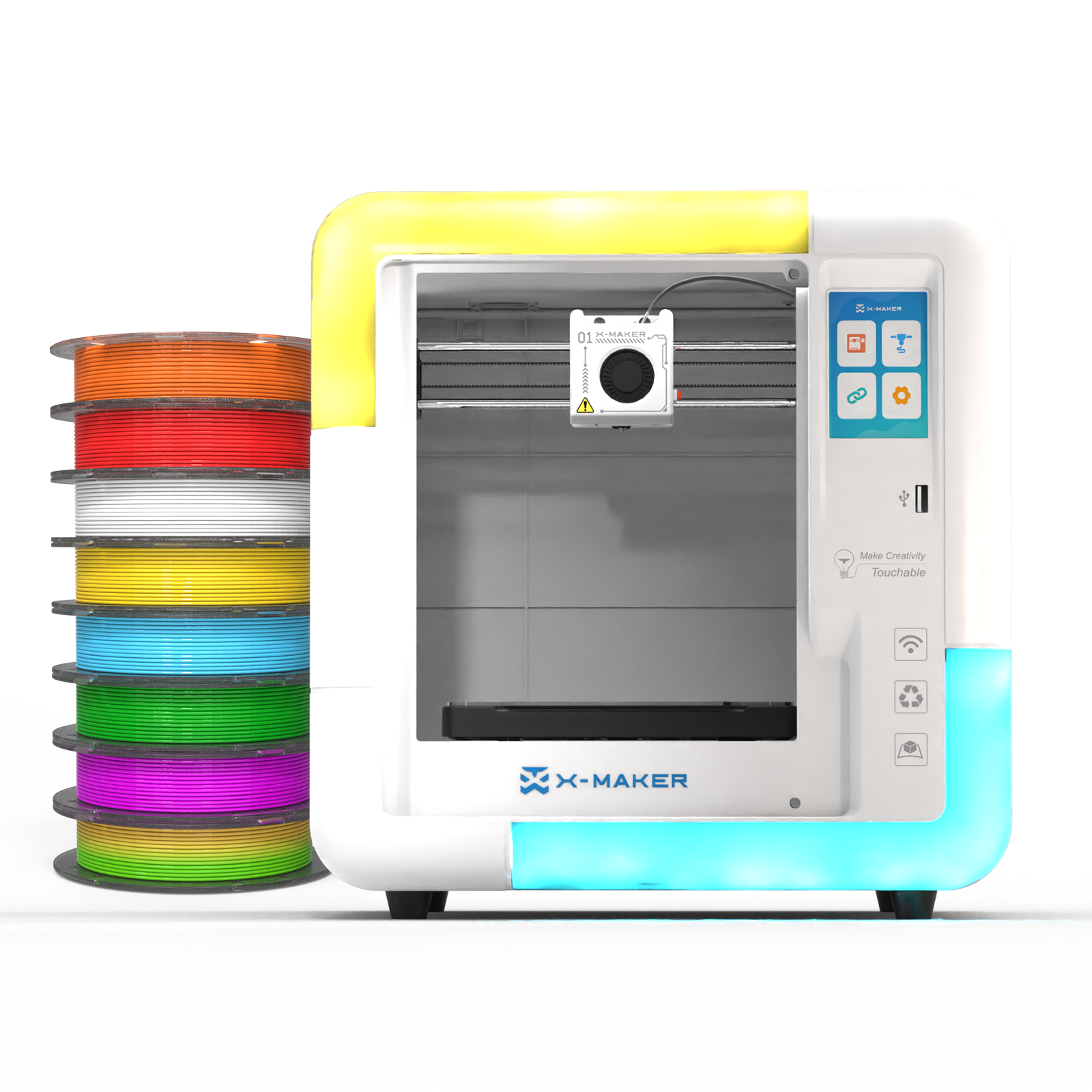 X-MAKER 3D -tulostin tuottaa yksityiskohtaisia malleja tarkkuudella 0.1/0.05mm. Soveltuu opetukseen, tukee luovuutta ja käytännön oppimista lapsille.