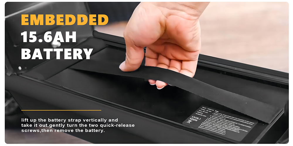 - Irrotettava 48V 15.6Ah litiumakku, latausaika 5–7 tuntia
