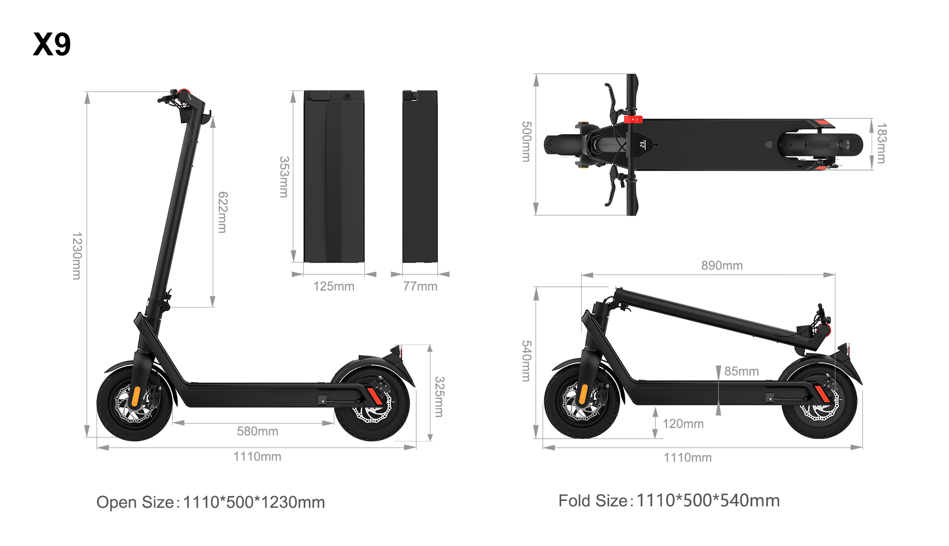 | Mitat taitettuna | 1110*500*540MM | Nousukulma | 25° |