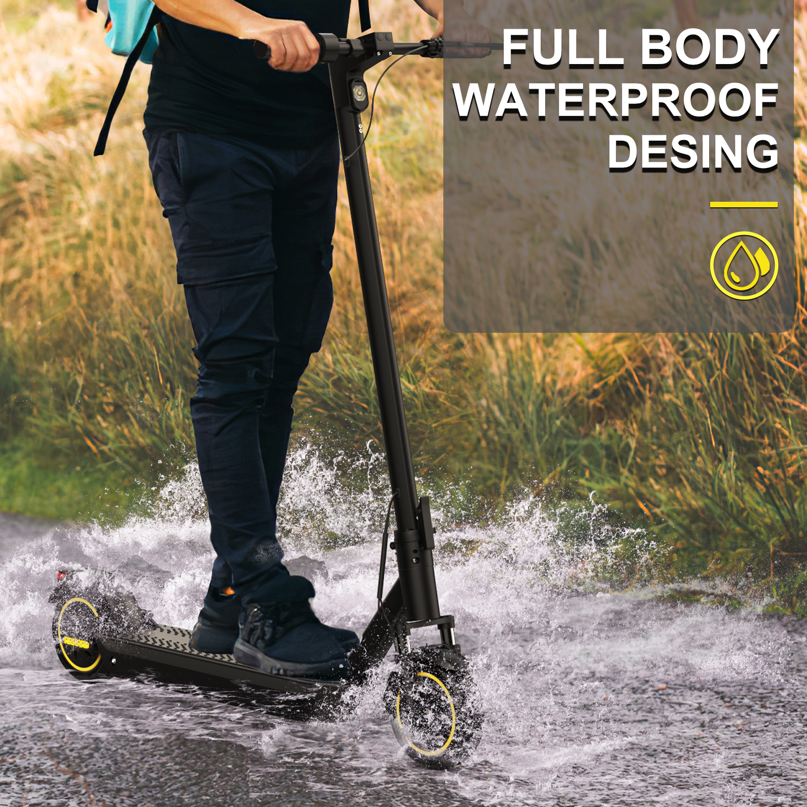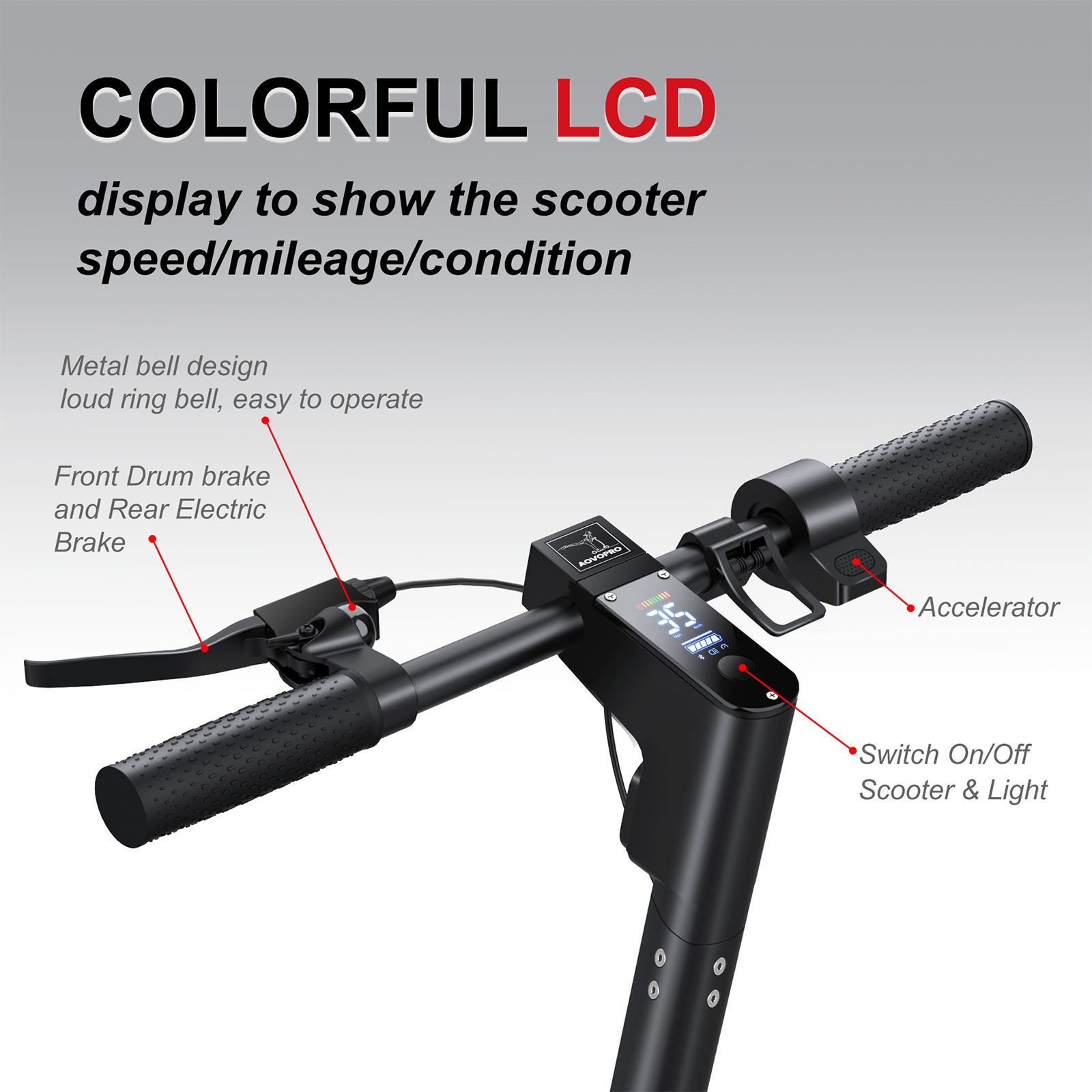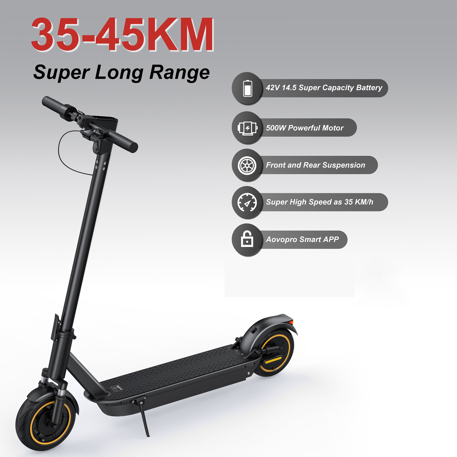 AOVOPRO ESMAX on tukevarunkoinen, koko rungon vesitiivis sähköpotkulauta, jossa on 10-tuumaiset umpikumikiekot, eturumpujarru ja takasähköjarru. Etu- ja takajousitus parantavat mukavuutta, ja 500W moottori sekä 42V 14.5Ah litiumakku tarjoavat 35-45KM toimintamatkan. Nopeustasot säätyvät sovelluksesta (aovopro) ja laitteen näytöstä.