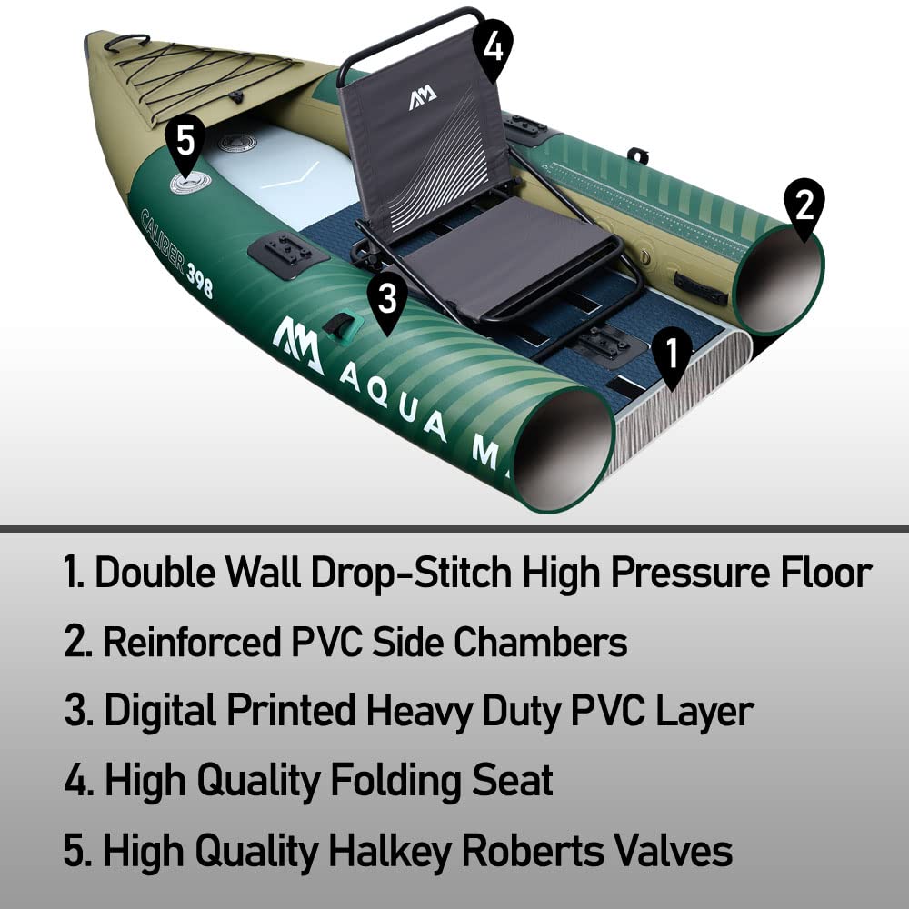 Aqua Marina Caliber 398 ilmatäytteinen kalastuskajakki yhdelle tai kahdelle 398 cm vakaa itsetyhjenevä