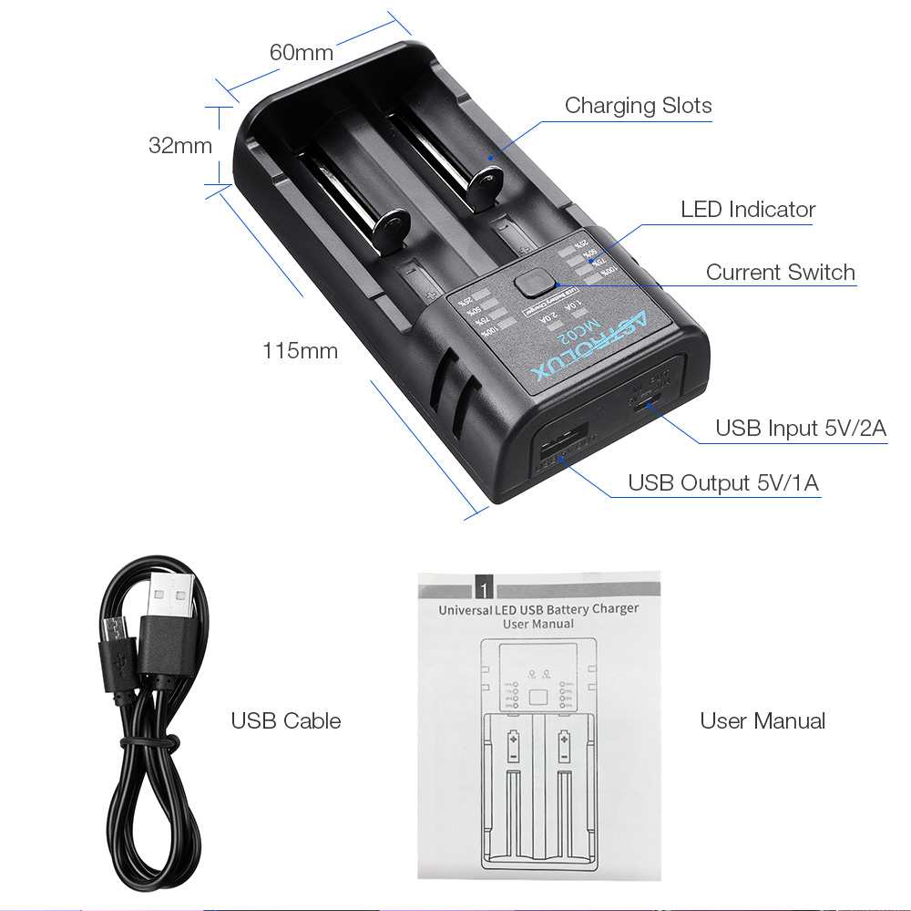 1 x ASTROLUX MC02 -akkulaturi (akku ei sisälly pakkaukseen)