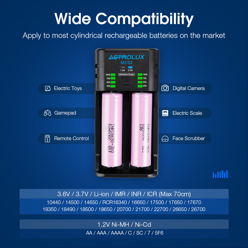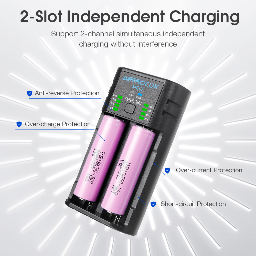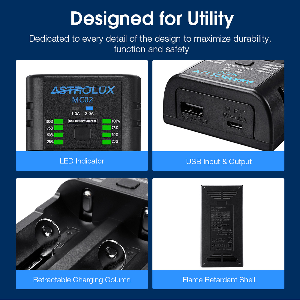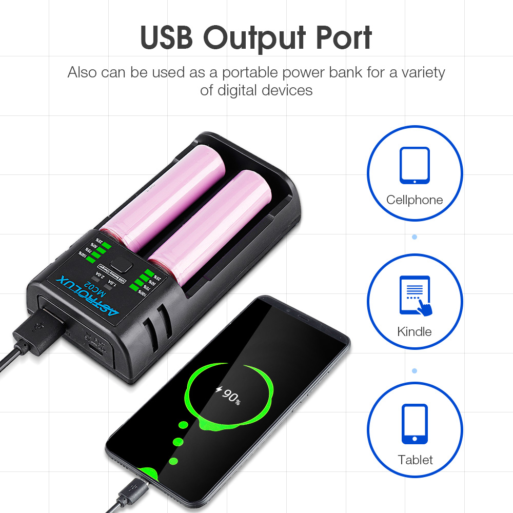ASTROLUX MC02 kahden toiminnon usb-lataava miniakkulaturi ja varavirtapankki yhteensopiva 18650 21700 26650