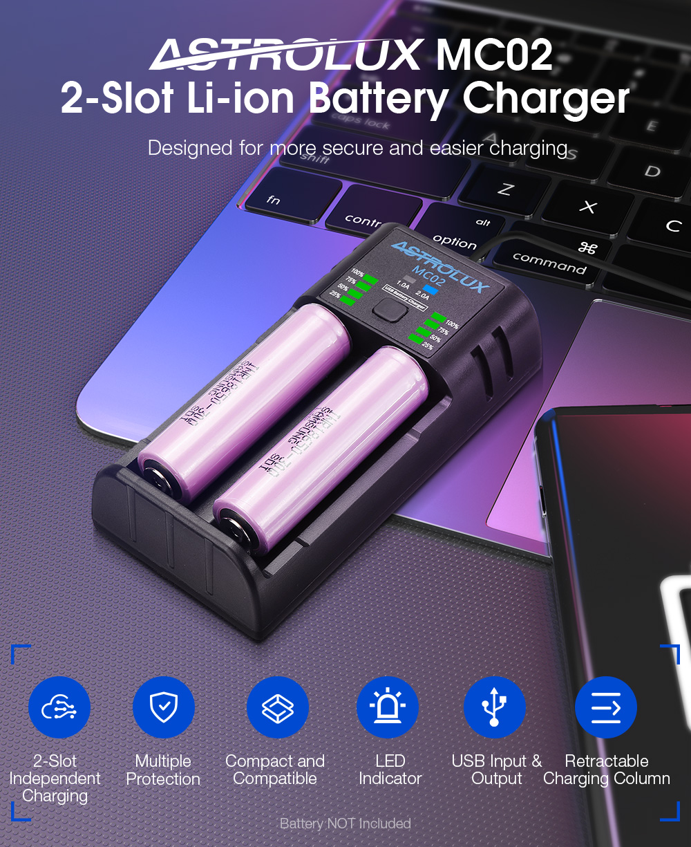 Kompakti ja helppokäyttöinen ASTROLUX MC02 -akkulaturi useille akkuchemioille ja -kokoille. Selkeä valittava latausvirta auttaa pidentämään akkujen käyttöikää ja Micro-USB-liitäntä tekee lataamisesta vaivatonta.