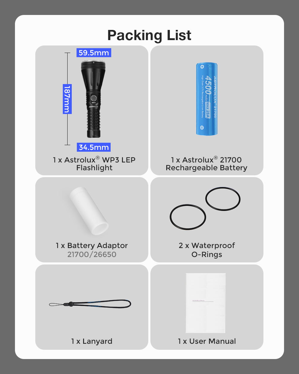 | Nimi | Astrolux® WP3 2952m Long Shoot LEP Flashlight |