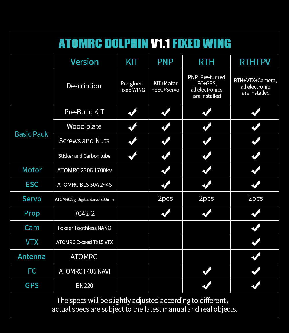 Versio: KIT, PNP, RTH FPV (valinnainen)