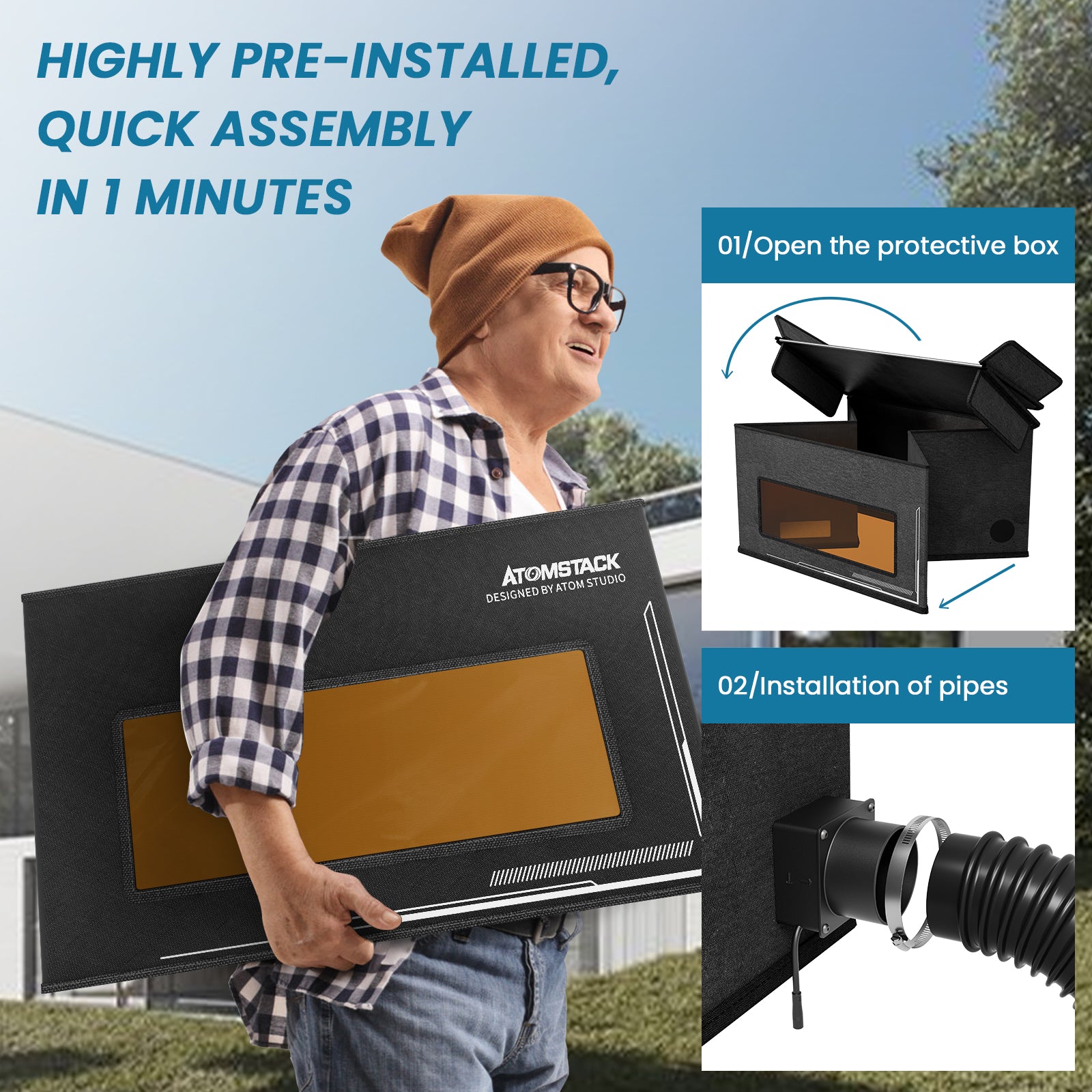 Atomstack FB2 taitettava pölytiivis palonkestävä suojakotelo savunpoistolla kaikille laserkaiverruslaitteille