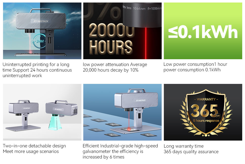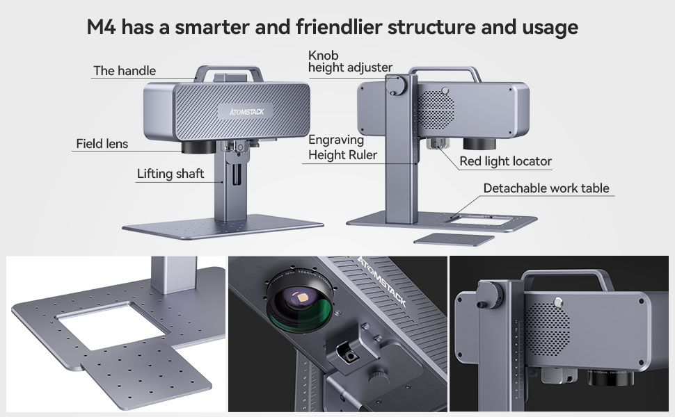 Teollisuusluokan tarkkuudella, nopeudella ja teholla Atomstack M4 Laser Marking Machine kaivertaa selkeästi ja nopeasti useille pinnoille metallista muoviin ja jopa nahkaan. Olipa kyse kaupallisesta projektista tai omasta yrityksestä, Atomstack M4 on luotettava työpari.
