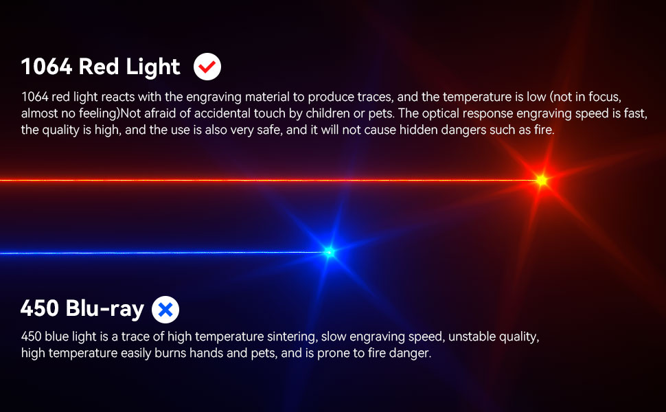8. Turvallinen käyttö: 1064nm infrapunavalo on kylmävalolähde, kosketus näyttöön ei aiheuta palovammoja, mikä vähentää henkilövahinkojen riskiä.