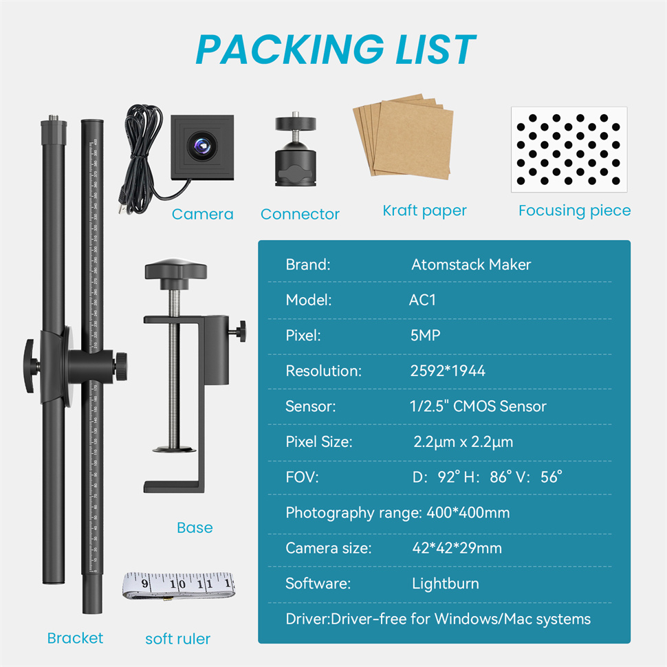 Atomstack Maker AC1 teollinen 5 megapikselin kamera tarkkaan laserkaiverrusten paikannukseen ja esikatseluun