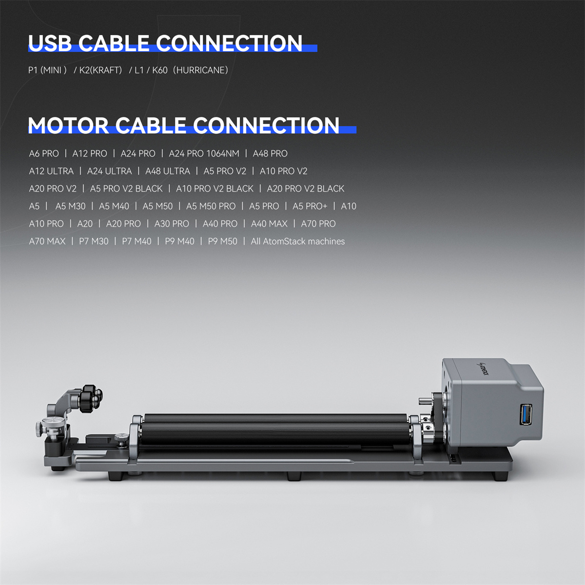 Atomstack R3 Pro päivitetty pyörivä rulla irrotettavalla tukimoduulilla ja jatkotorneilla