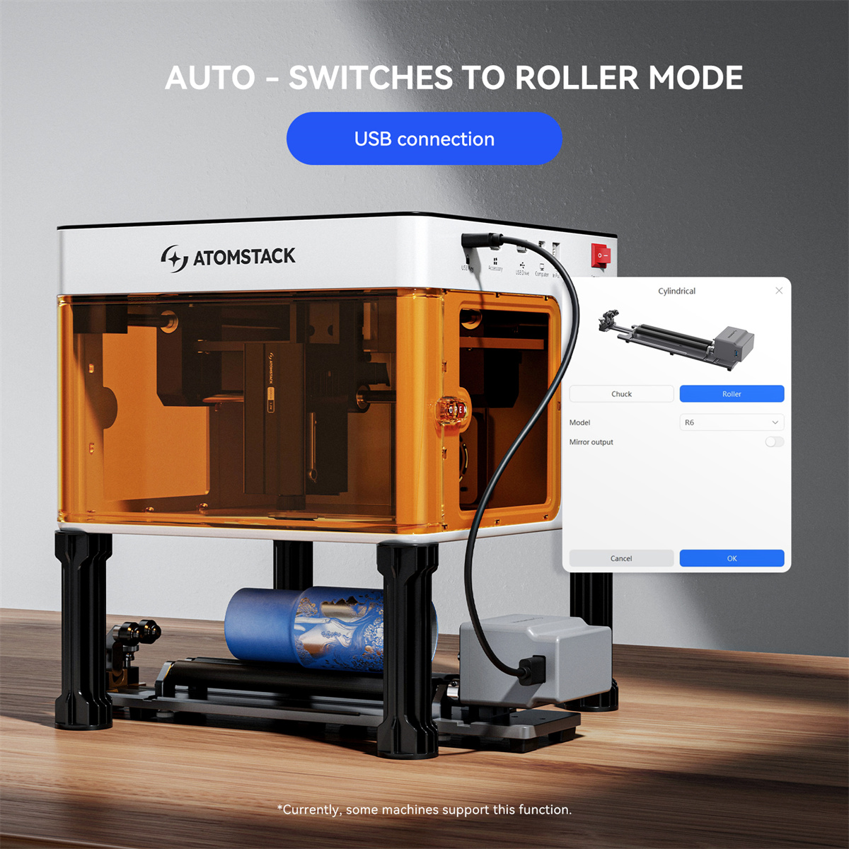 2. Älykäs tunnistus tunnistussirulla: kone siirtyy automaattisesti telamoodiin ja toimii ATOMSTACK STUDIO -ohjelmiston kanssa ilman manuaalisia asetuksia.