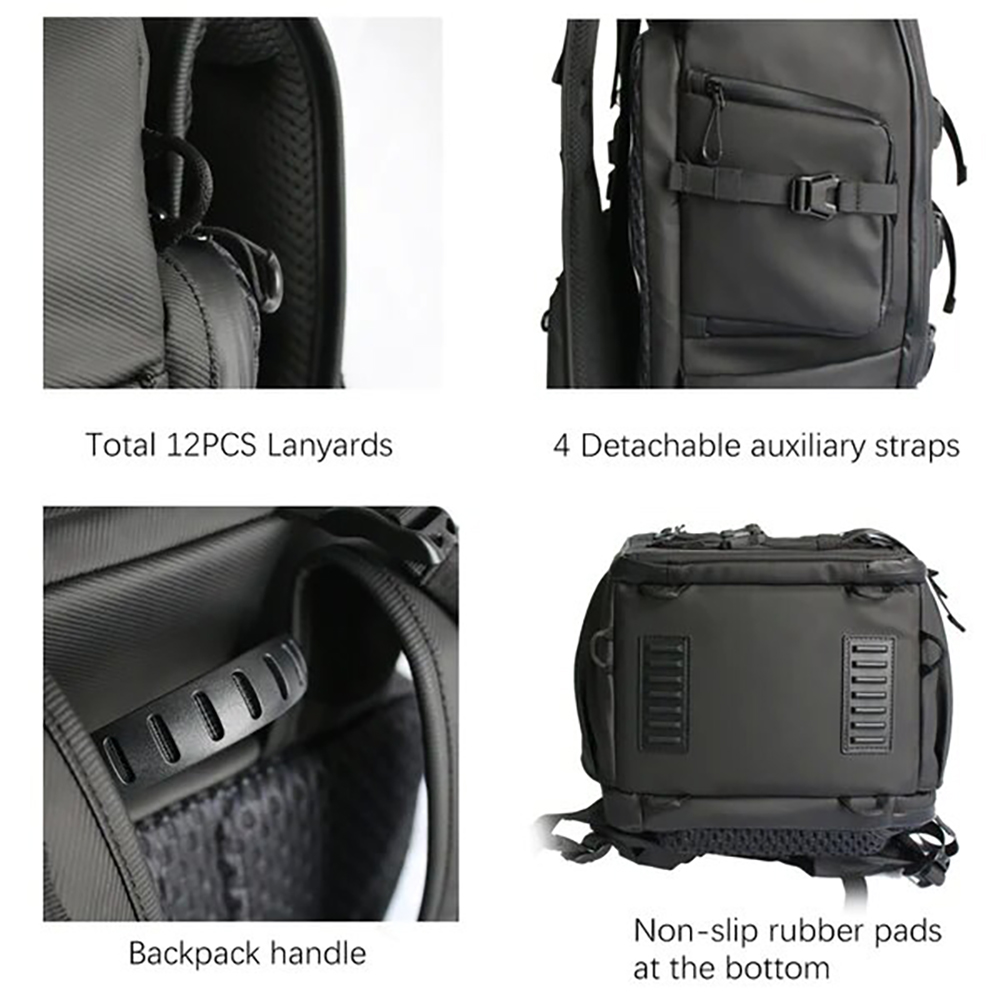 2. Runsaasti säilytystilaa: Tilava päälokero ja useat taskut mahdollistavat dronen, tarvikkeiden ja muiden välttämättömien varusteiden helpon kuljettamisen.