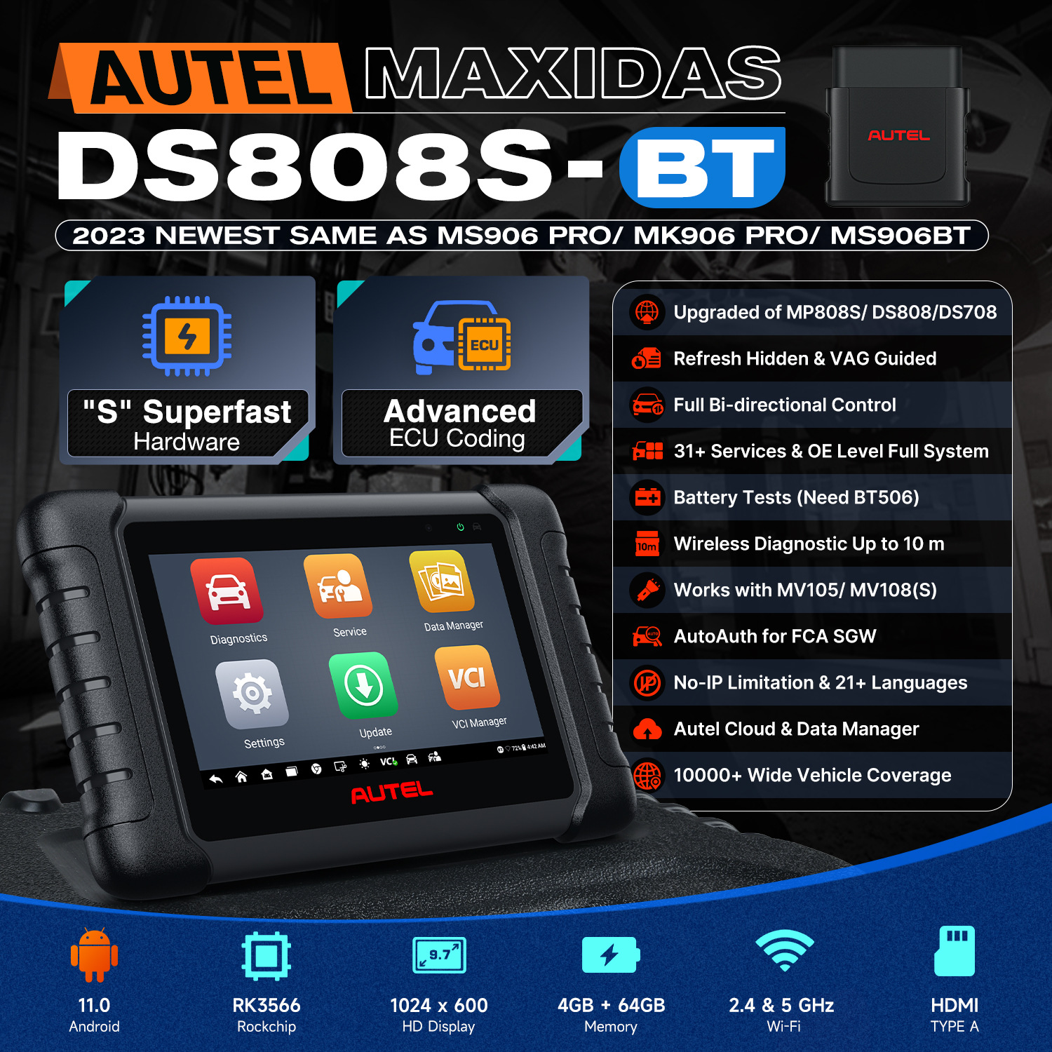 Autel MaxiDAS DS808S-BT – pääominaisuudet: