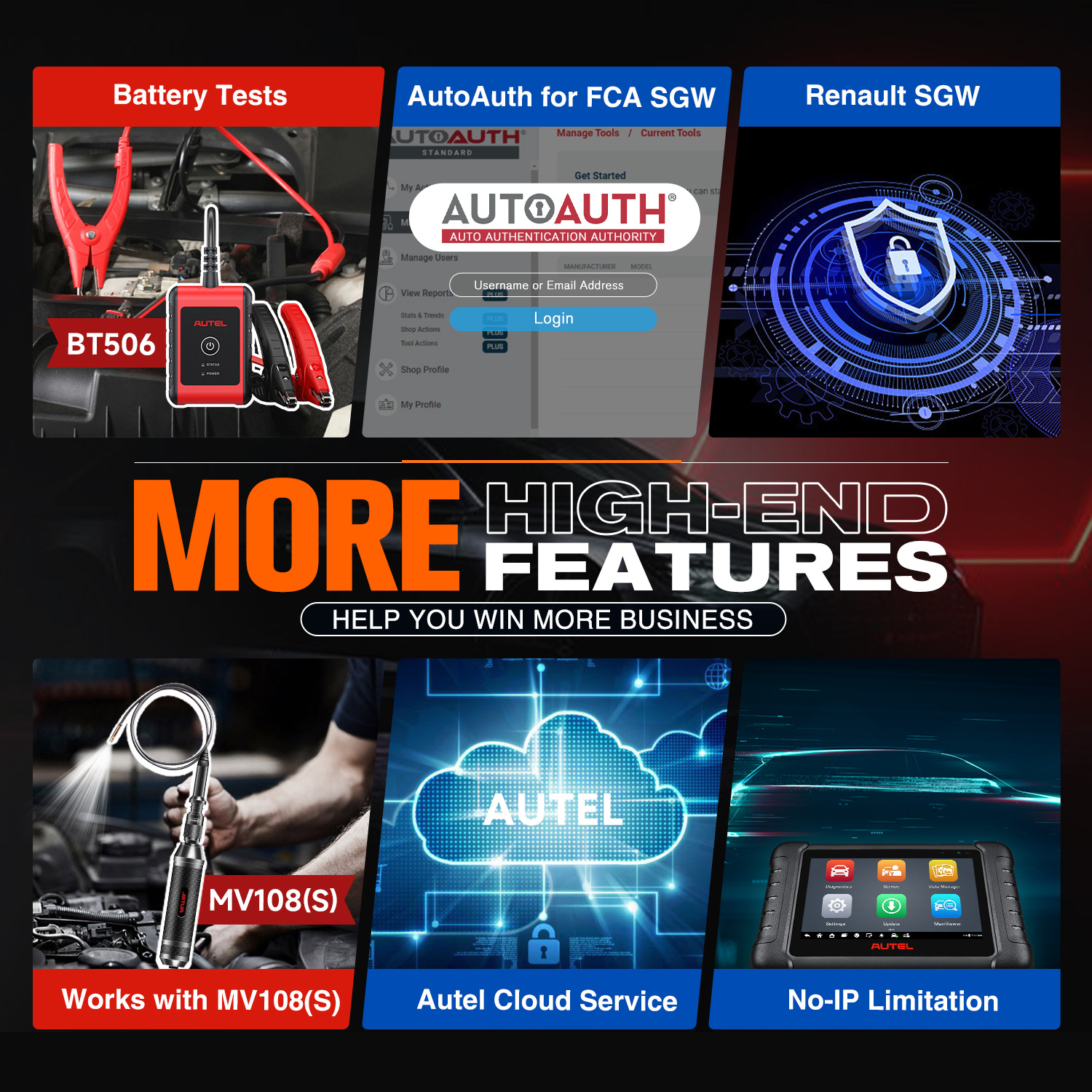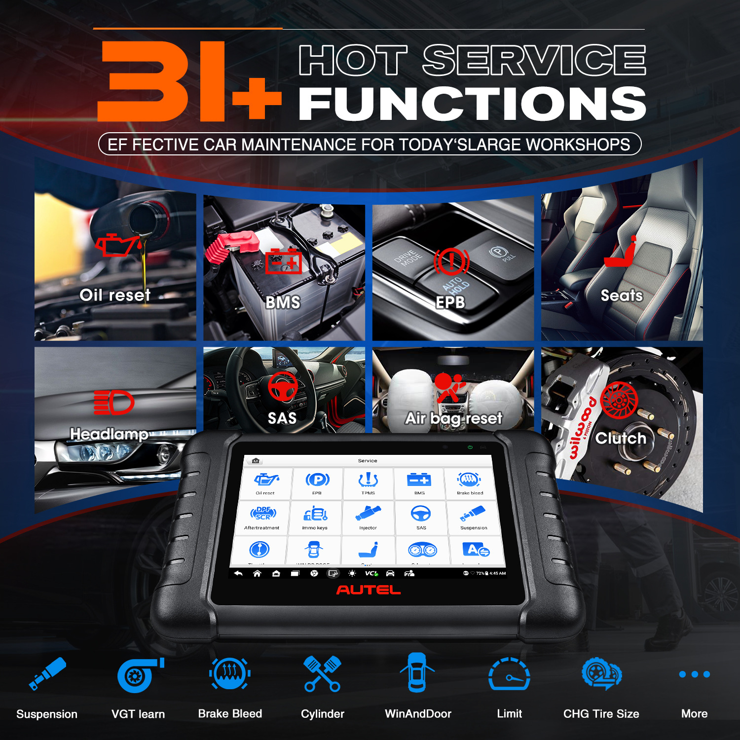 [37+ huoltotoimintoa] Sama taso kuin MK908 II/ MS908S PRO II/ MS906 PRO: ABS, SRS, öljyn nollaus, vaihteiston sopeutus, SAS, BMS, kaasuläpän sovitus, jarrujen nollaus, suuttimet, kielen vaihto, A/F-asetukset, alusta, ajovalot, turbo, power balance, kytkimen oppiminen jne.