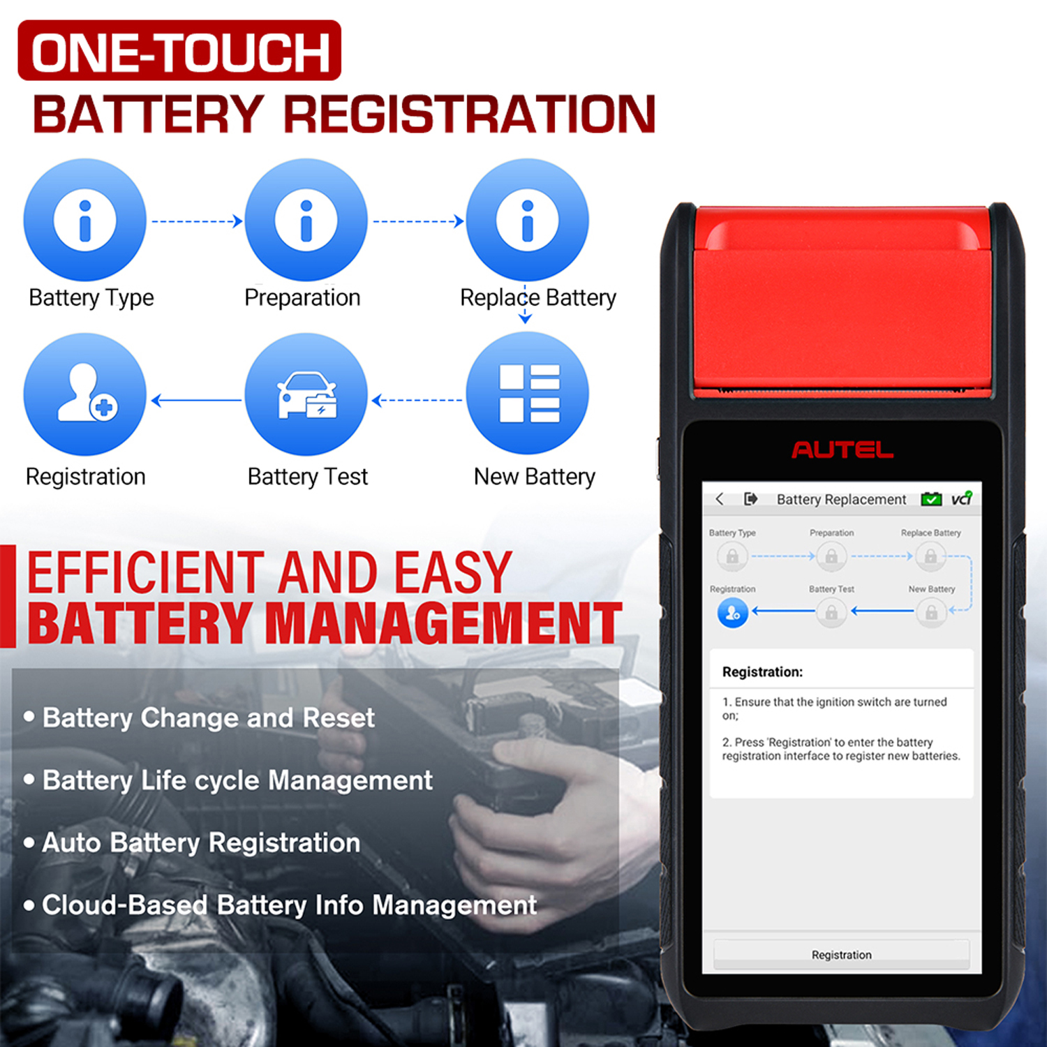BT608E-akun testeri sisältää Auto VIN-, Auto Scan- ja Plate Scan -toiminnot, joilla ajoneuvon ja akun tiedot saadaan nopeasti sisäänrakennetulla 8MP HD -kameralla.