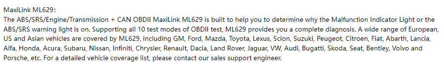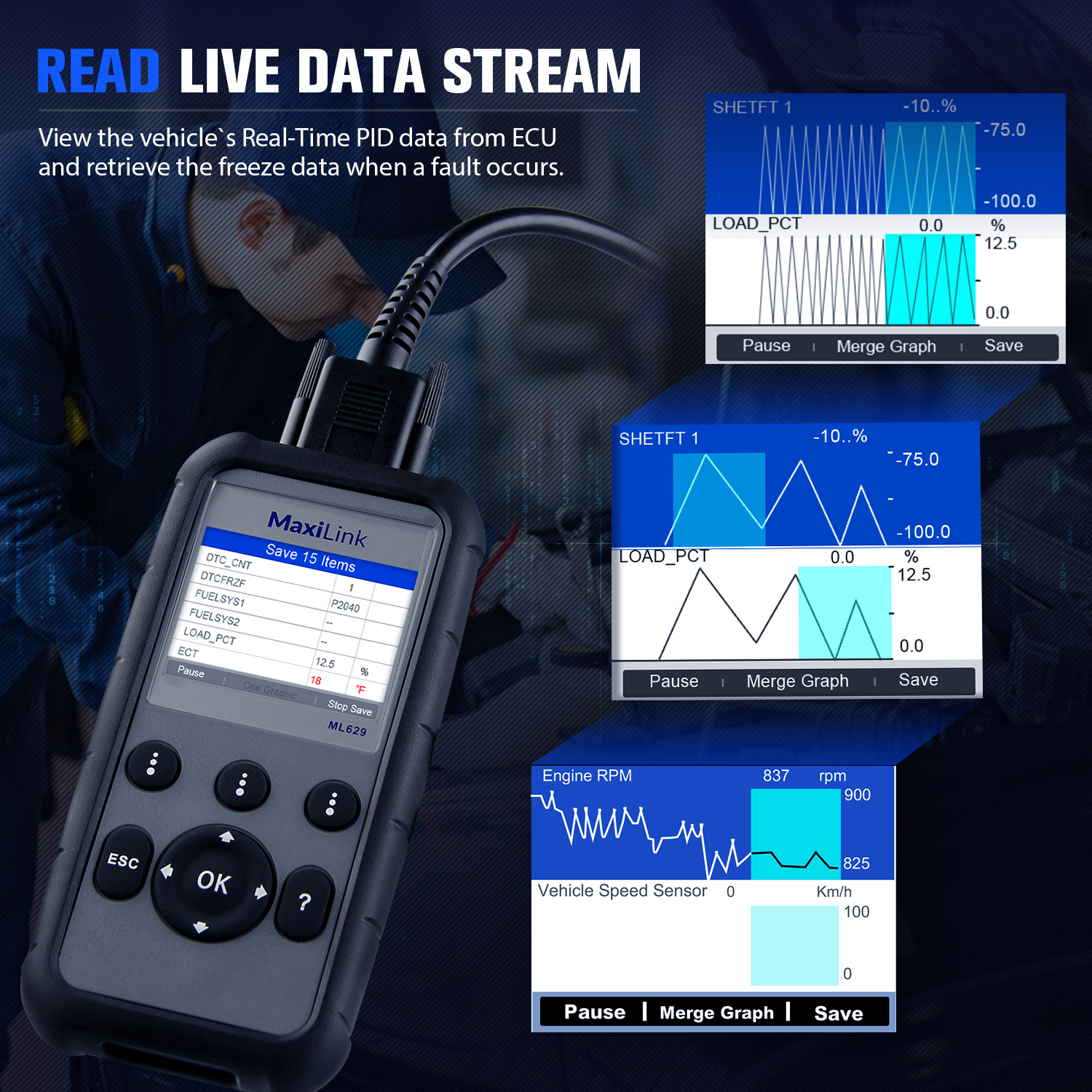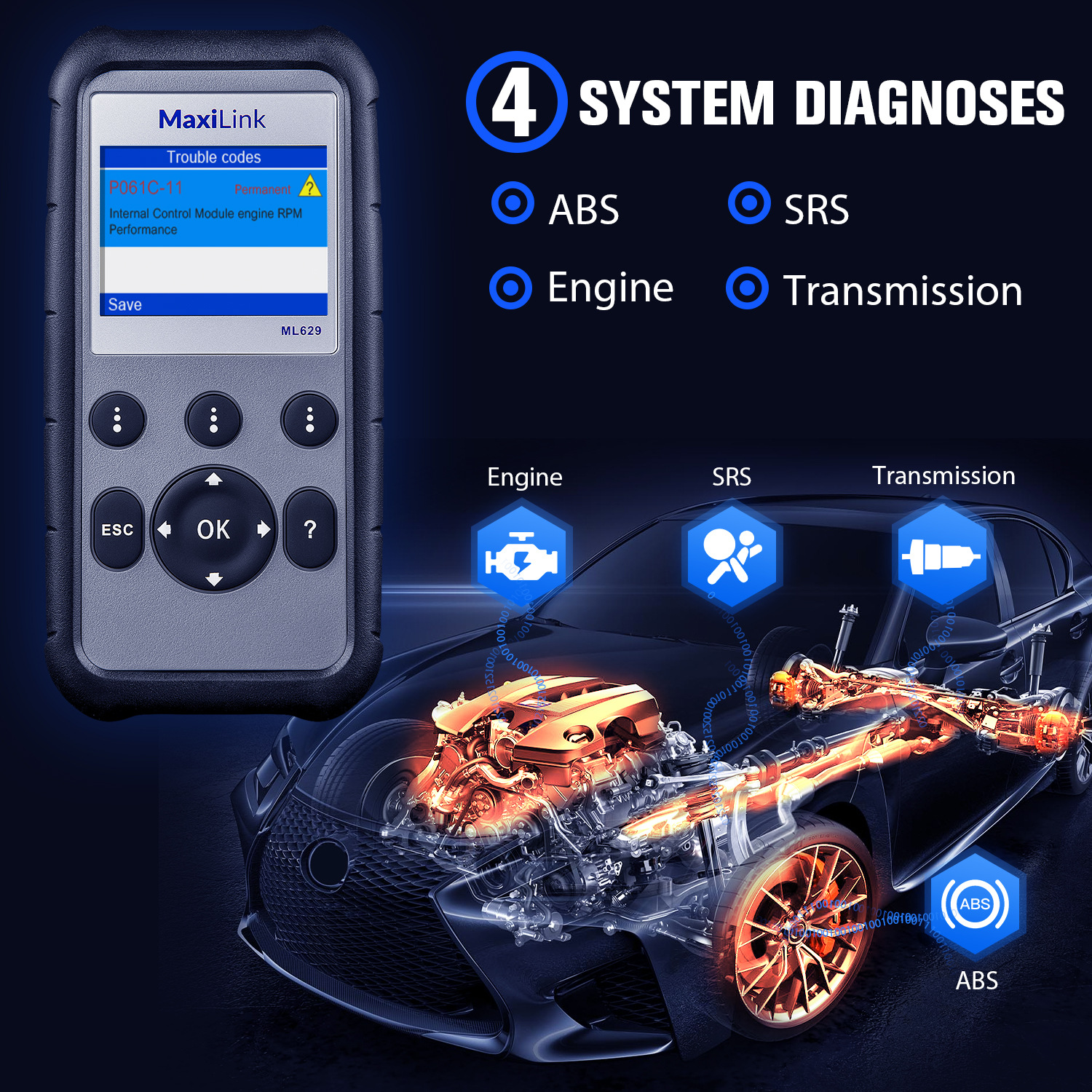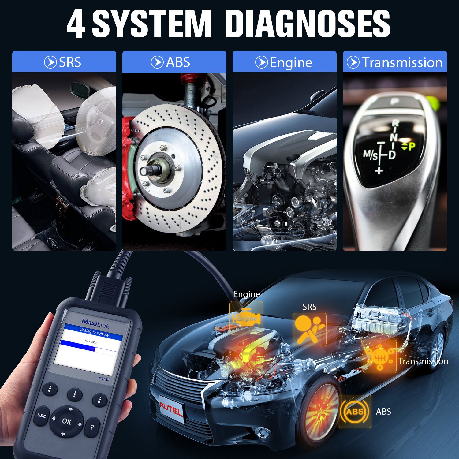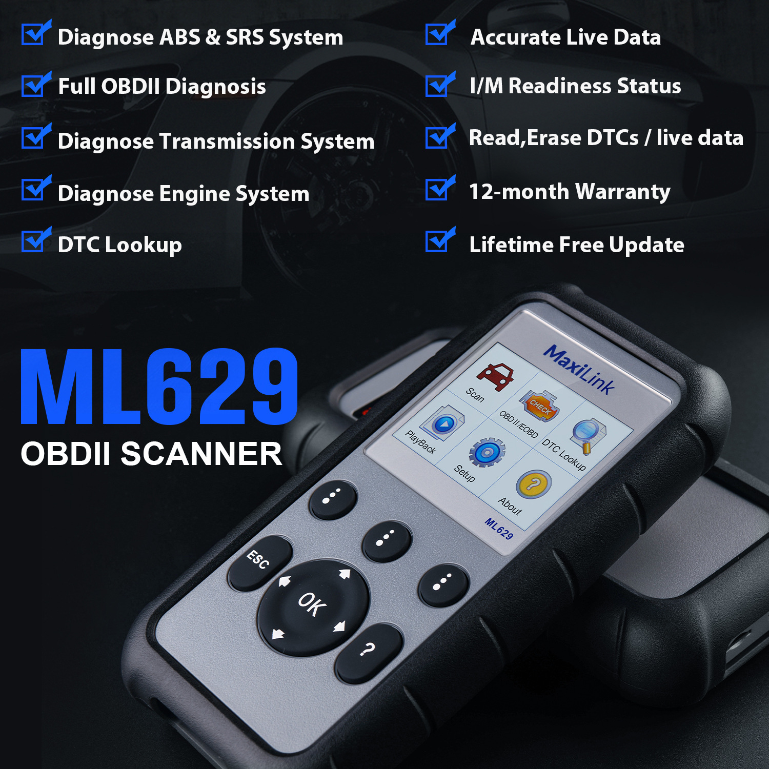 Autel MaxiLink ML629 OBD2-CAN-skanneri moottori ABS SRS vaihteiston diagnostiikka