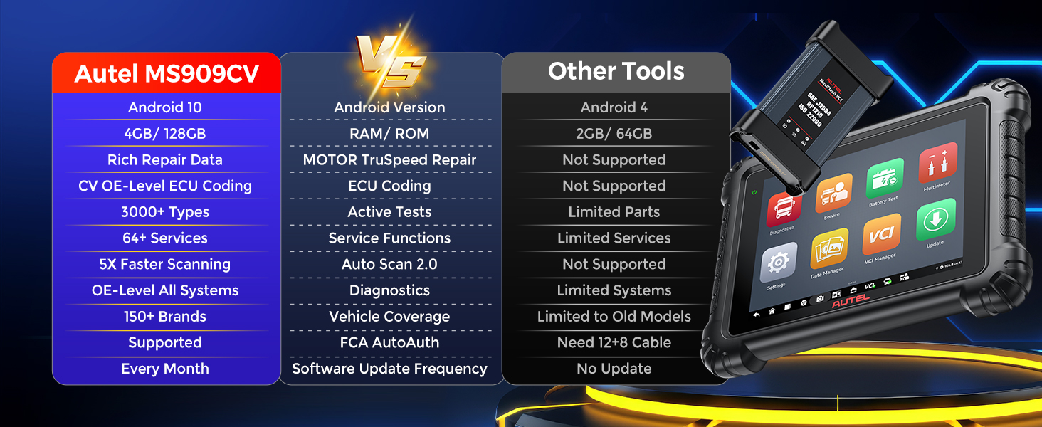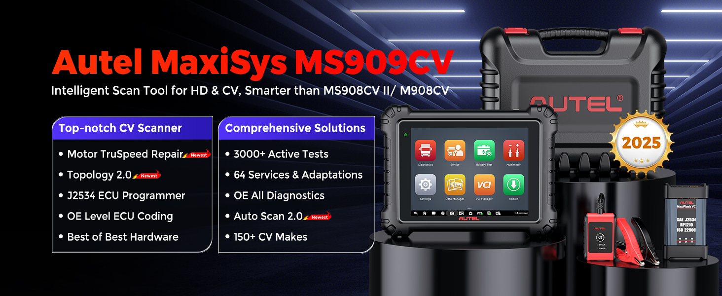 Autel MaxiSys MS909CV 9,7-tuumainen ajoneuvodiagnostiikkatyökalu Android 10 3000 aktiivista testiä raskaille ajoneuvoille
