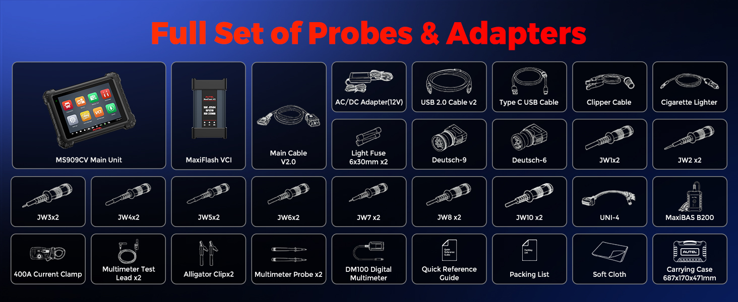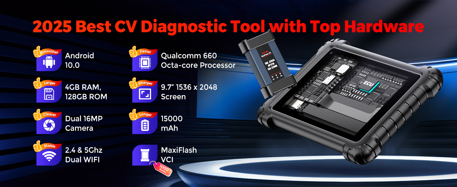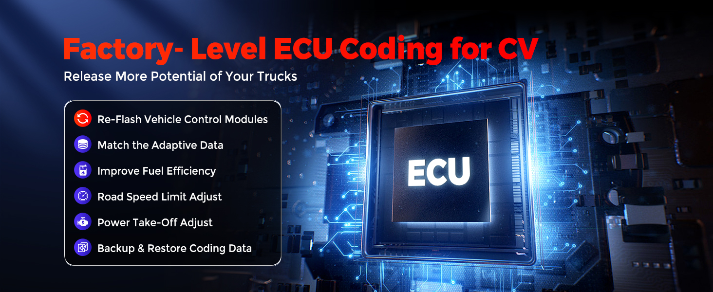 - OE-tason ECU-koodaus: parannettu J2534 läpivientitekniikka tukee adaptiivista koodausta, moduulien uudelleenkalibrointia ja suorituskyvyn optimointia. Yhteensopiva OE-ohjelmistojen kanssa ja kattaa yli 80 CV-brändiä.