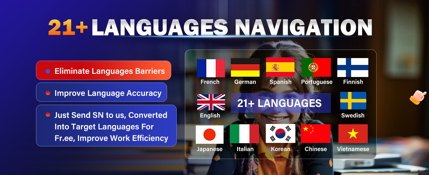 yksinkertaistettu kiina, englanti, perinteinen kiina, espanja, ranska, saksa, venäjä, japani, korea, puola, portugali, ruotsi, persia, turkki, thai, vietnam, heprea, arabia, indonesia, italia, hollanti...