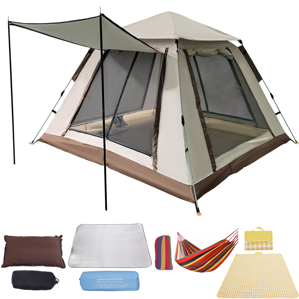 Automaattiteltta kahdelle tai neljälle hengelle, vedenpitävä, aurinkosuoja, riippumatto, piknikliina