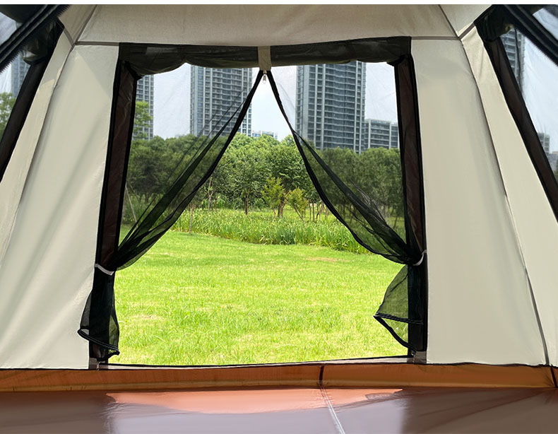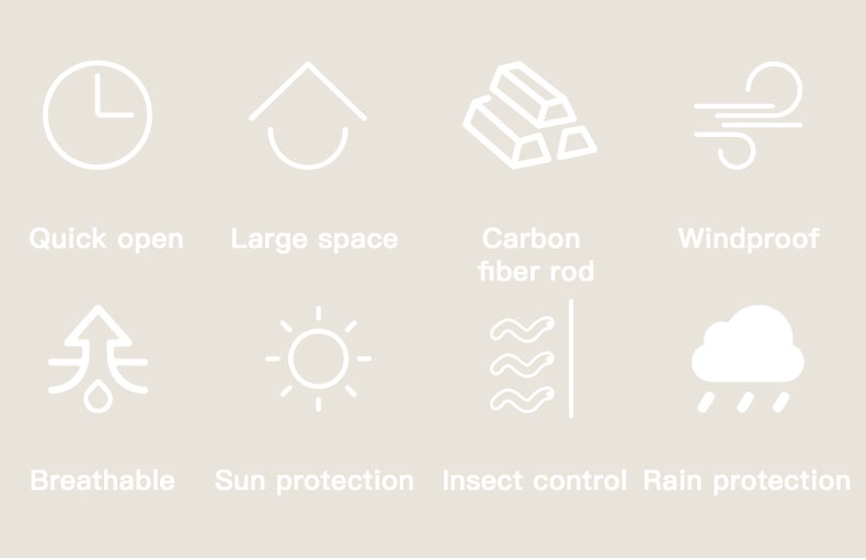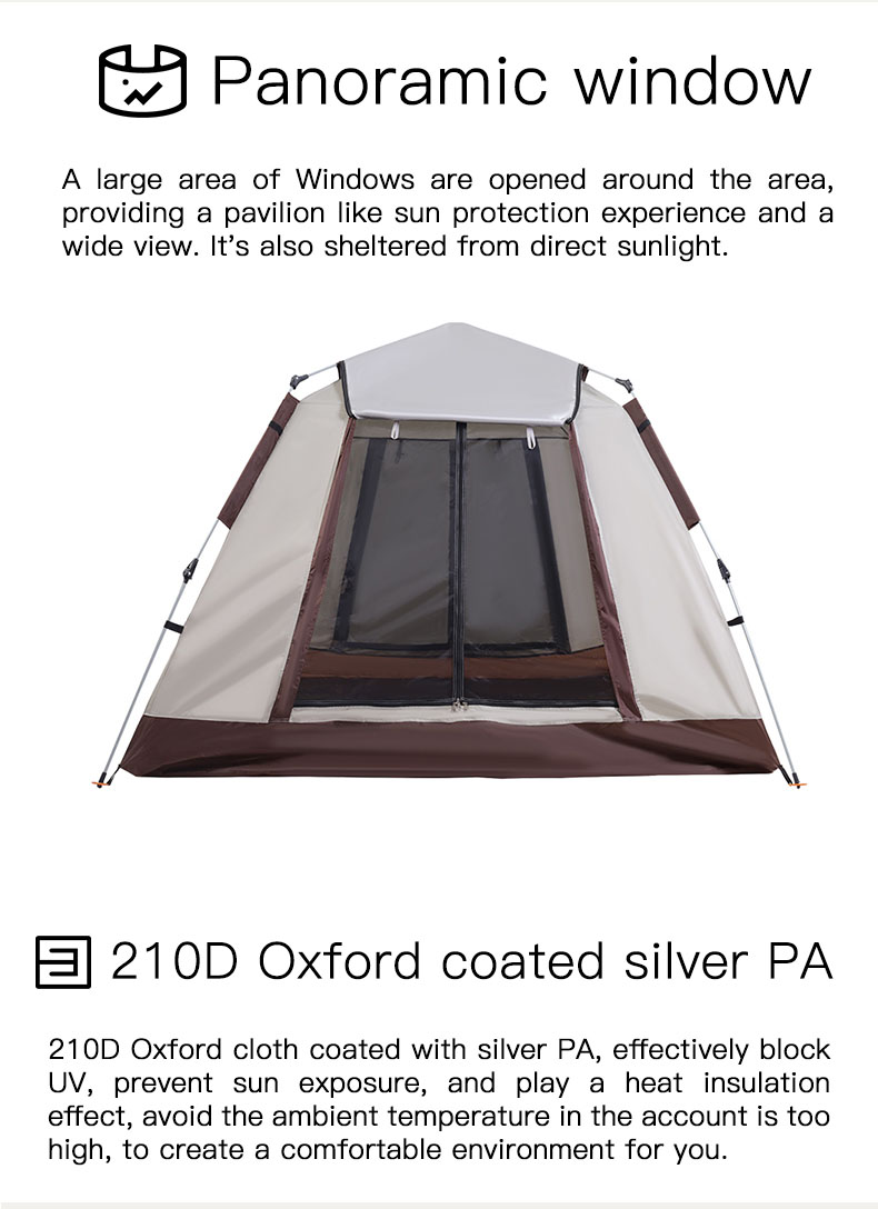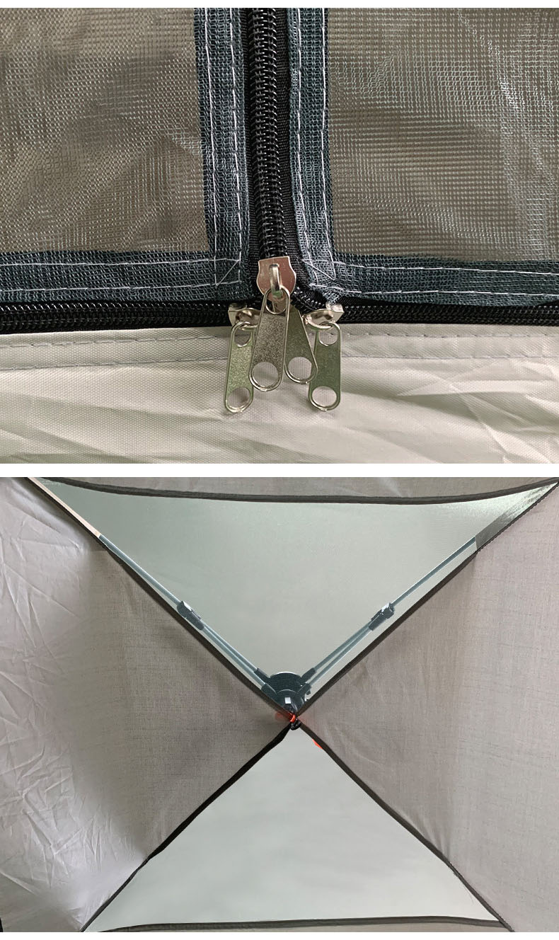 Teltan materiaali on 210D Oxford -kangasta, joka on kudottu tavallista paksummasta langasta. Kangas on hengittävää ja sopii hyvin lämpimiin olosuhteisiin. Hopeisella PA-pinnoitteella käsitelty 210D Oxford -kangas auttaa tehokkaasti estämään UV-säteitä, vähentää auringon aiheuttamaa kuumenemista ja parantaa lämmöneristystä, jotta teltan sisälämpötila pysyy mahdollisimman miellyttävänä.